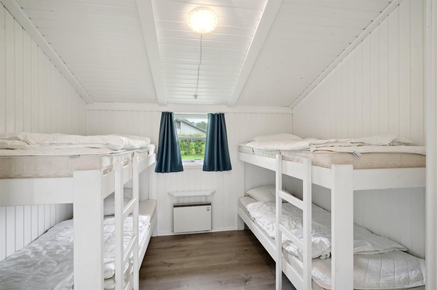 Die Schlafplätze verteilen sich auf 4 Schlafräume. 4 Schlafplätze in Doppelbetten. 2 Schlafplätze in Einzelbetten. 4 Schlafplätze in Etagenbetten. 2 Schlafplätze auf Matratzen. 2 von diesen Schlafplätzen befinden sich im offenen Obergeschoss. Ferner steht ein Kinderbett zur Verfügung.