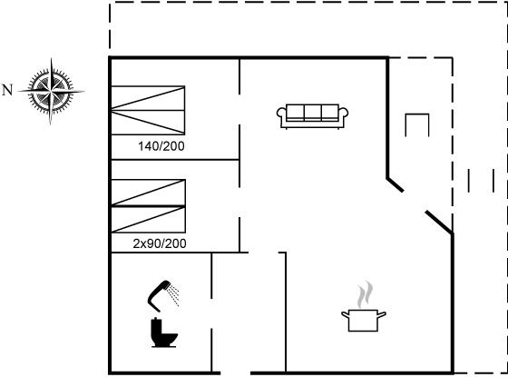 In der Ferienunterkunft gibt es einen Fernseher. 1 Smart-TV. Mindestens 4 dänische Fernsehsender. Mindestens 4 deutsche Fernsehsender. Es steht kabellose Internetverbindung zur Verfügung.
