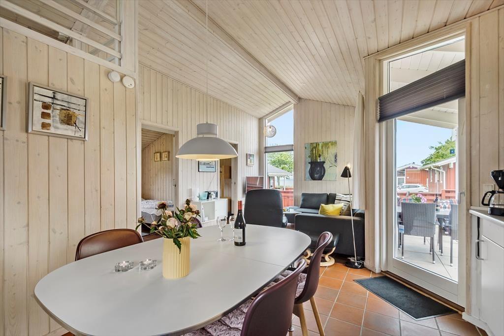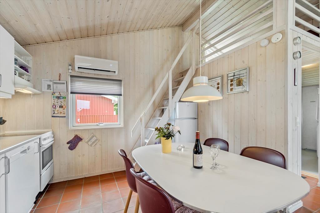 Dieses neuere Ferienhaus liegt nah am Wasser und nah an einem großen Gemeinschaftsareal, das unter anderem einen Bolzplatz, eine Lagerfeuerstelle, einen Spielplatz und einen Fischreinigungstisch. Folgen Sie Fiskervej nach Mommark für 150 Meter, danach ist ein öffentlicher Weg zum Strand Gebiet. Unten am Wasser treffen Sie auf eine gemeinschaftlich nutzbare Badebrücke. Im Haus empfängt Sie eine Küche, die sich in offener Verbindung zum Wohn- und Essbereich befindet, von wo aus Sie auch direkt hinaus auf die teilweise offene Terrasse gelangen. Die Schlafplätze verteilen sich auf 2 Schlafzimmer, von denen eines mit einem Einzelbett (90 x 200 cm) und das andere mit einem Etagenbett (90 x 200 cm) eingerichtet ist. Zwei weitere Schlafplätze stehen Ihnen in Form zweier Matratzen auf dem eingezogenen Schlafboden zur Verfügung. Diese eignen sich am besten für größere Kinder. Zur Wohnfläche zählt darüber hinaus ein ansprechendes Badezimmer mit einer Waschmaschine und einer Duschnische. Das Urlaubsdomizil wurde zuletzt in 2010 modernisiert. Im Zuge dieser Modernisierung wurde unter anderem der Schlafboden eingezogen. Auch die große, umzäunte Terrasse wurde zu dieser Zeit an die Süd- und Ostseite des Hauses gebaut. Nach dem Jahr 2010 erfreute sich das Objekt laufender Renovierungen und Instandhaltungen, sodass es Sie heute in einem hellen und einladenden Zustand begrüßt.