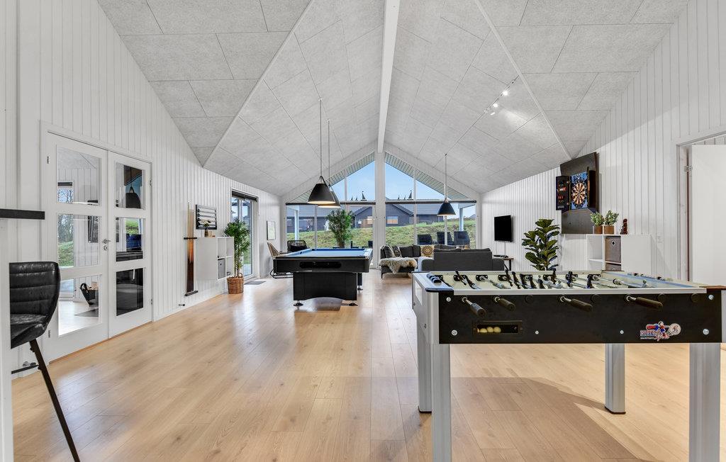 Willkommen in diesem geräumigen und komfortablen Ferienhaus bei Mommark Strand. Das Haus ist der ideale Ort für einen Urlaub mit einer großen Gruppe oder mehreren Familien und Haustieren. Auf 375 m² bietet das Haus 12 Schlafzimmer, einen Wohnbereich mit offener Küche, fünf Badezimmer, einen Aktivitätsraum und einen Innenpool mit Gegenstromanlage.
