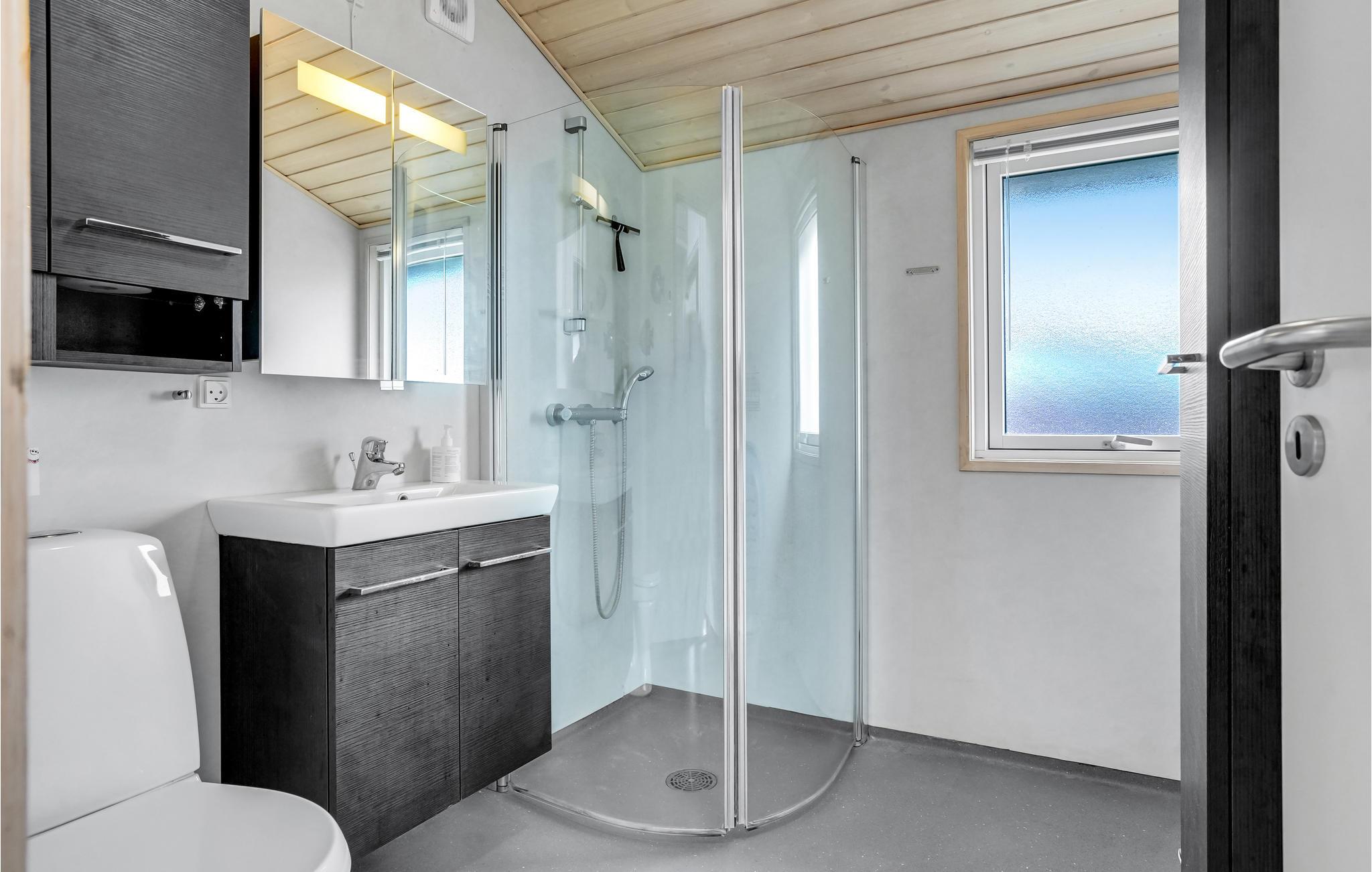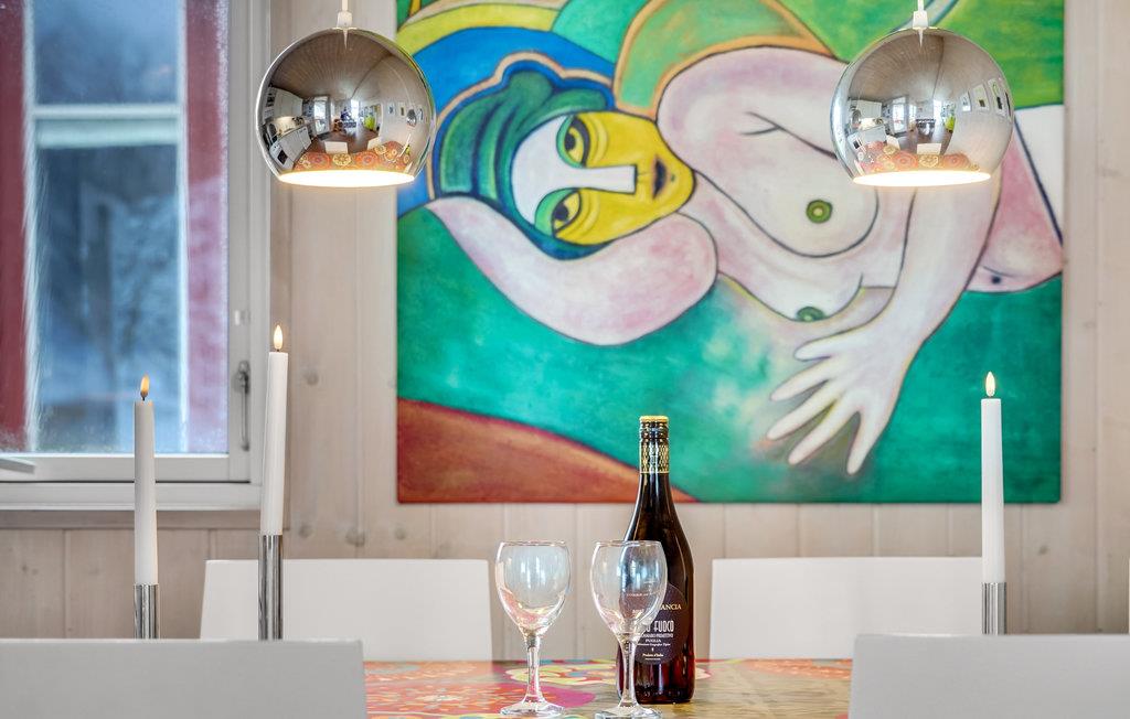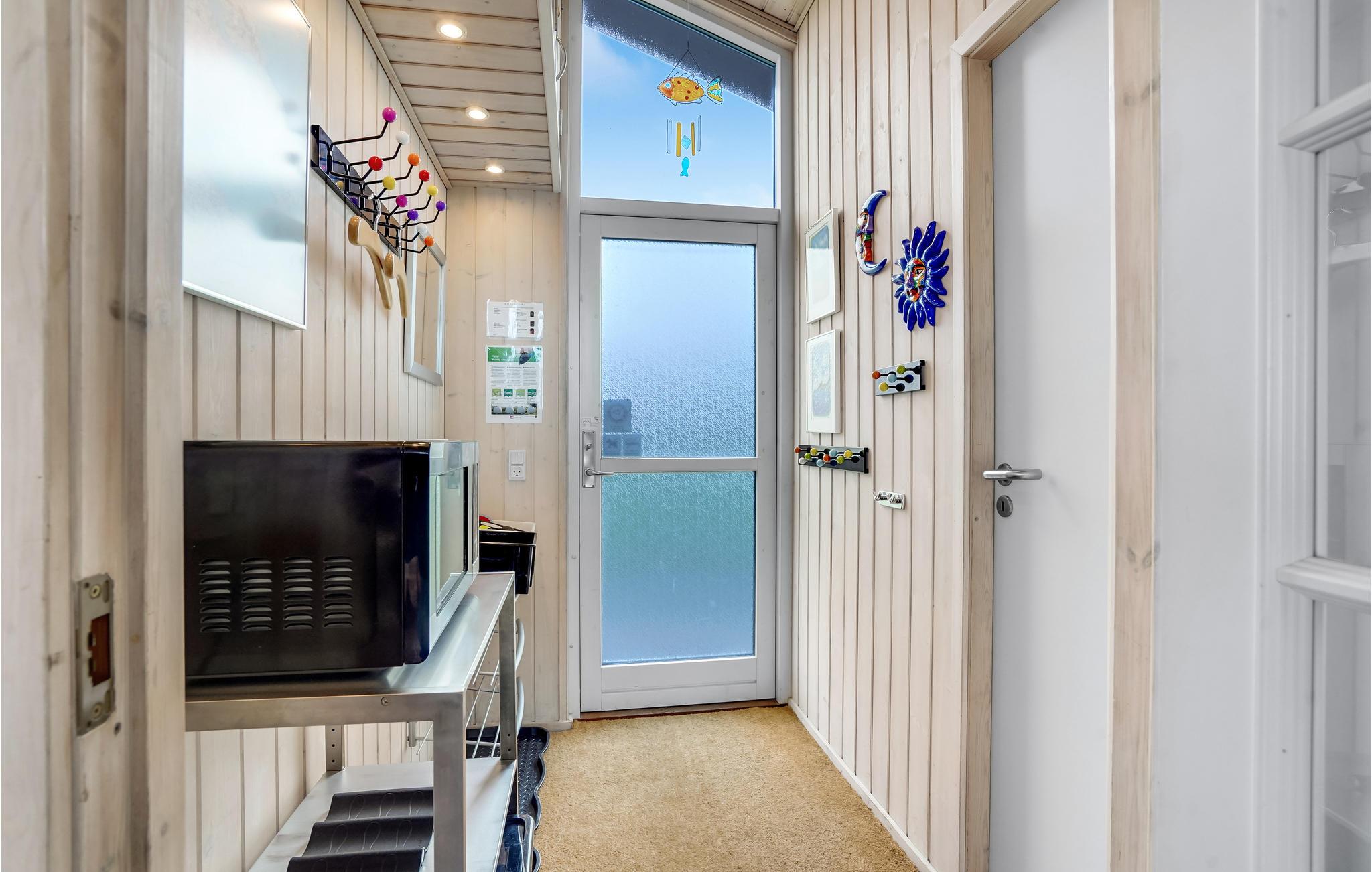 Treten Sie ein und lassen Sie sich von der freundlichen Atmosphäre des offenen Wohnraums empfangen. Die hellen Holzwände und großen Fenster schaffen eine warme, lichtdurchflutete Umgebung, die zum Verweilen einlädt. Entspannen Sie auf dem gemütlichen Sofa mit Blick auf das Wasser oder lesen Sie ein Buch in einem der bequemen Sessel. Die Einrichtung ist geschmackvoll mit farbenfrohen Akzenten gestaltet, die dem Haus einen fröhlichen Charakter verleihen. Nutzen Sie die praktische Küche, um Ihre Lieblingsgerichte zuzubereiten, und genießen Sie gemeinsame Mahlzeiten am Esstisch, über dem moderne Lampen für stimmungsvolles Licht sorgen.