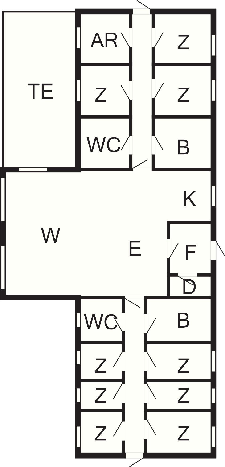 10 Schlafz.: (1DB)+(1DB)+(1DB)+(1DB)+(1DB)+(1DB)+(1DB)+(1B)+(1B)+(4K), Kinderbett