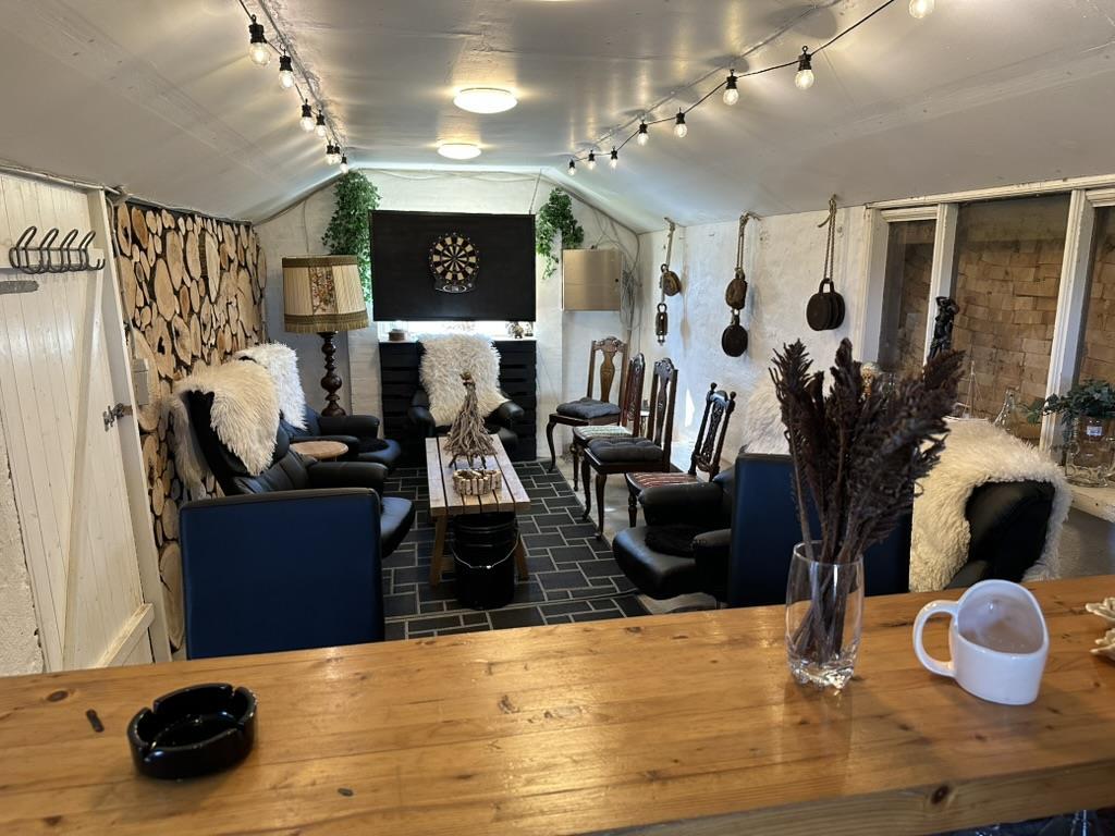 Auf dem Grundstück befindet sich ein gemütliches Nebengebäude mit Bar und Dartscheibe – perfekt für gesellige Abende und entspannte Stunden.