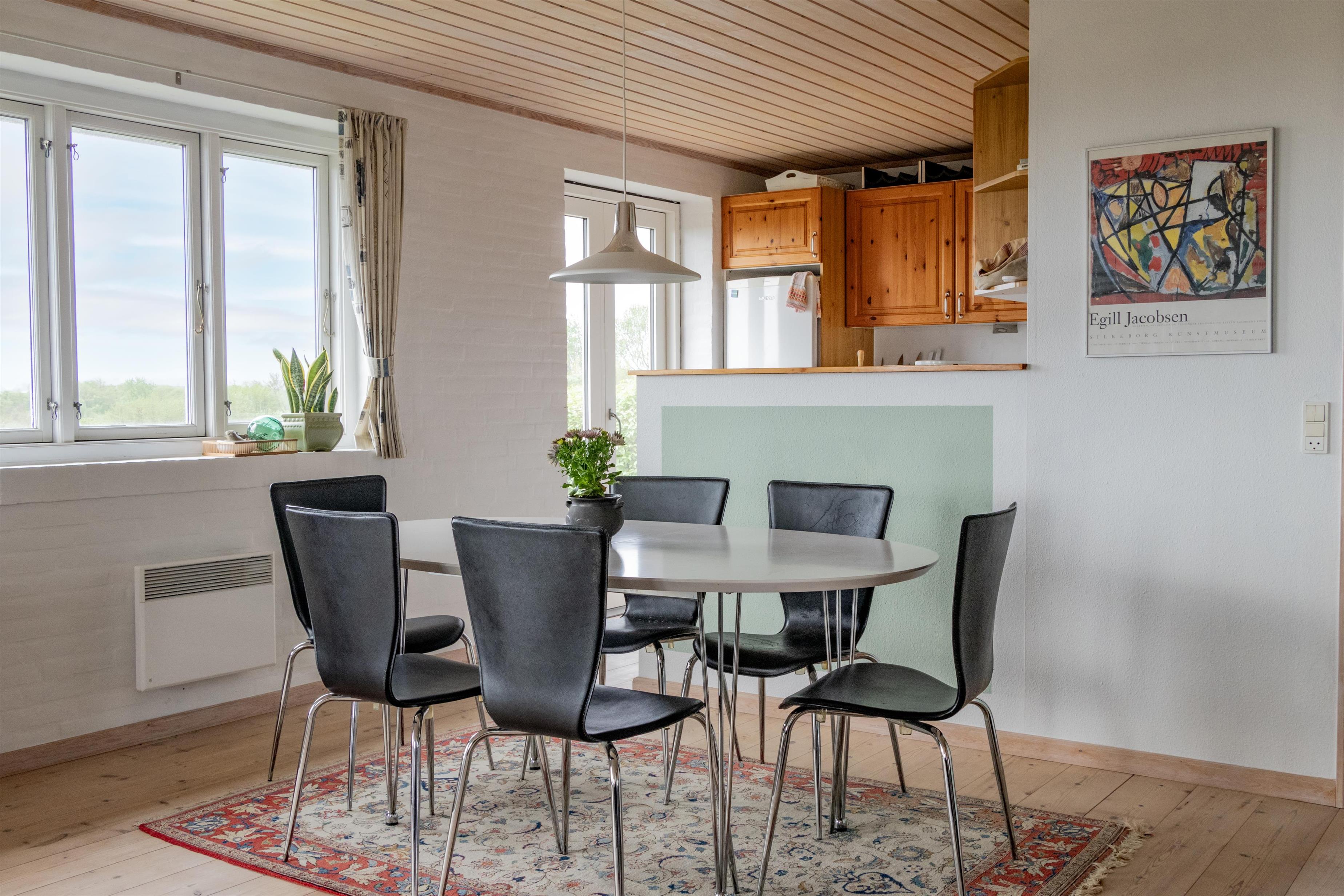 Schönes Sommerhaus für 6 Personen in Ørding Ferieby. Das Haus liegt auf einer Ebene und bietet einen schönen Blick über den Limfjord. 3 Zimmer, zwei mit einem Doppelbett und eines mit einem guten 3/4-Schlafsofa. Offene Küche und Esszimmer als Erweiterung des Wohnzimmers. Alles mit einem wunderschönen Blick auf den Fjord. Offene Terrasse mit Gartenmöbeln und Grill. In der Nähe gibt es einen großen Spielplatz. Fußläufig zum Strand mit Steg und kinderfreundlichem Strand.