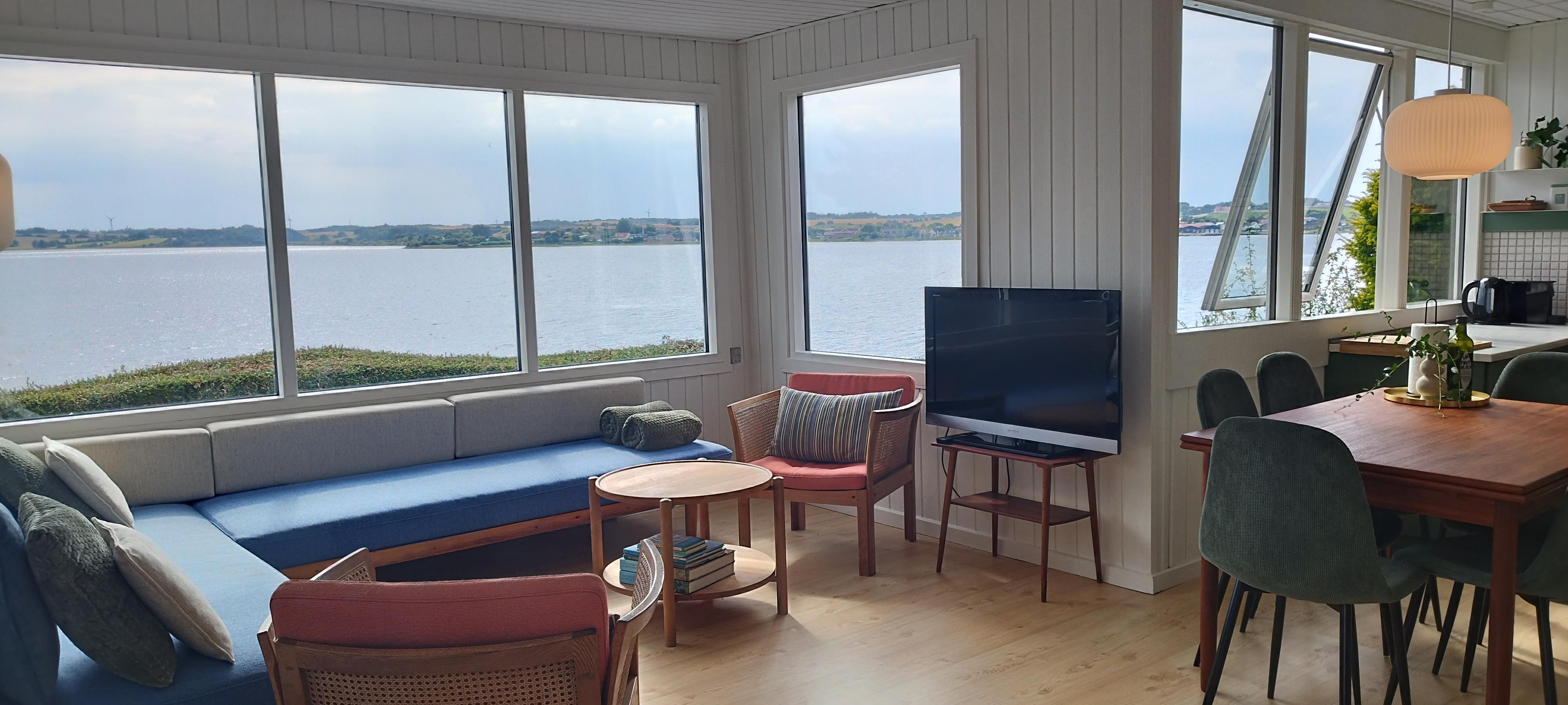 Wunderschönes, originelles und charmantes Ferienhaus mit direktem Zugang zum eigenen Strand und dem schönsten Panoramablick über den Fjord in Richtung Thy und der Vilsundbrücke.