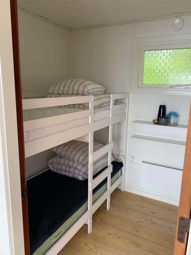 Auch im Inneren des Hauses hat man dank der großen Fenster in der Wohnküche das Gefühl, eins mit der Natur zu sein. Das Haus verfügt über eine Küche mit Wohnzimmer, ein Zimmer mit Doppelbett, ein Zimmer mit 2 Etagenbetten (90x190 cm), ein Badezimmer mit Dusche und einen Flur. Es gibt auch kostenloses WLAN und der Fernseher ist mit Google Chromecast ausgestattet. . Zwischen dem Haus und dem Strand ist ein wunderschöner Unterstand platziert, der frei genutzt werden kann.