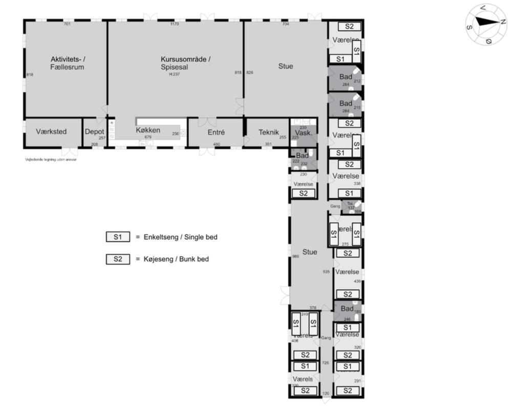Das Ferienhaus, die Partyräume und das Kursgelände Hanklit liegen in einem fantastischen Naturgebiet, nur 400 m von Hanklit entfernt und wurden in den letzten Jahren kontinuierlich renoviert. Das Haus verfügt über 32 Schlafplätze, aufgeteilt in Einzelbetten und Etagenbetten. Außerdem 10 lose Matratzen. Es gibt jedoch nur Bettdecken und Kissen für 32 Personen. Wenn Sie also mehr anreisen, müssen Sie diese selbst mitbringen. Im Jahr 2020 gibt es neue Matratzen in den Etagenbetten. Im Zusammenhang mit der Renovierung wurde eine große Küche mit allen modernen Einrichtungen geschaffen. Die Küche ist mit dem großen Wohnzimmer verbunden. Es gibt 4 Badezimmer mit 5 Duschen und 5 Toiletten. Es gibt ein drahtloses Netzwerk. Schöner Aktivitätsraum mit verschiedenen Spiele, Billardtisch, Tischtennis und Tischfußball. Apple TV und Google Chromecast. Auf der großen Westterrasse befinden sich 2 große Partygrills und eine Feuerstelle. Ab Januar 2022 gibt es eine 10-Personen-Saunakabine.
