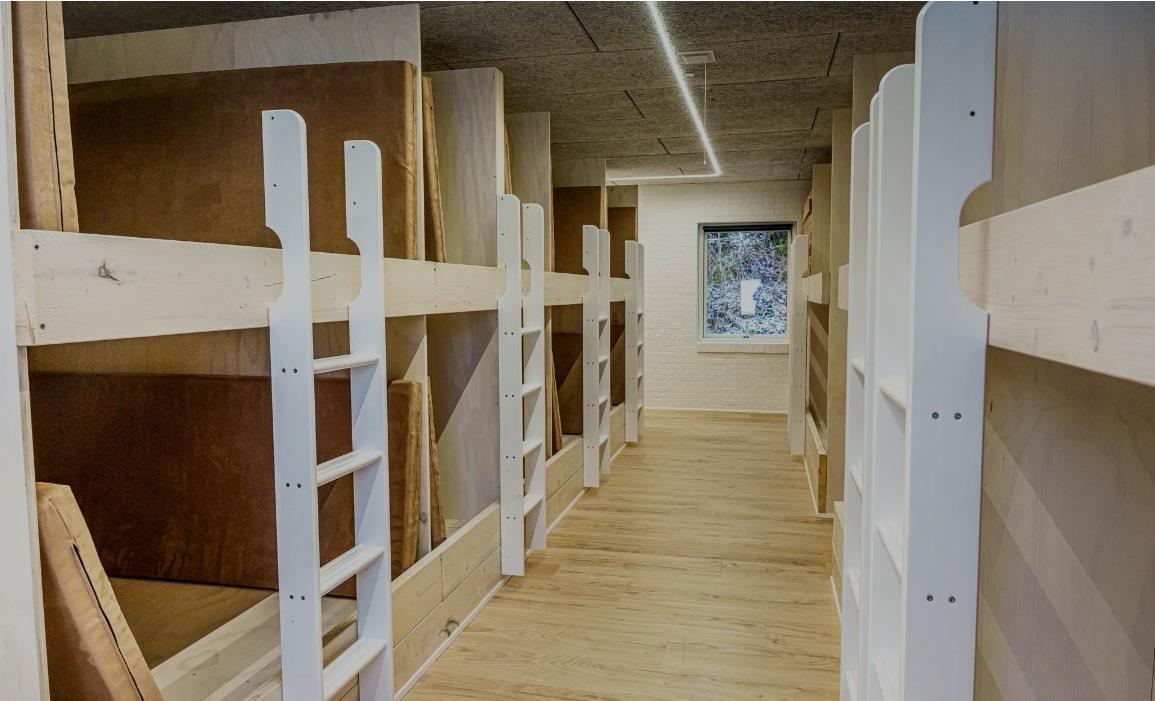 Bjørneborg verfügt über 3 Schlafsäle mit 20, 20 und 44 Etagenbetten, die „als Alkoven gebaut“ sind und ab 2023 mit neuen guten Schaumstoffmatratzen ausgestattet sind. Darüber hinaus gibt es 3 Executive-Zimmer mit jeweils zwei guten Boxspringmatratzen.