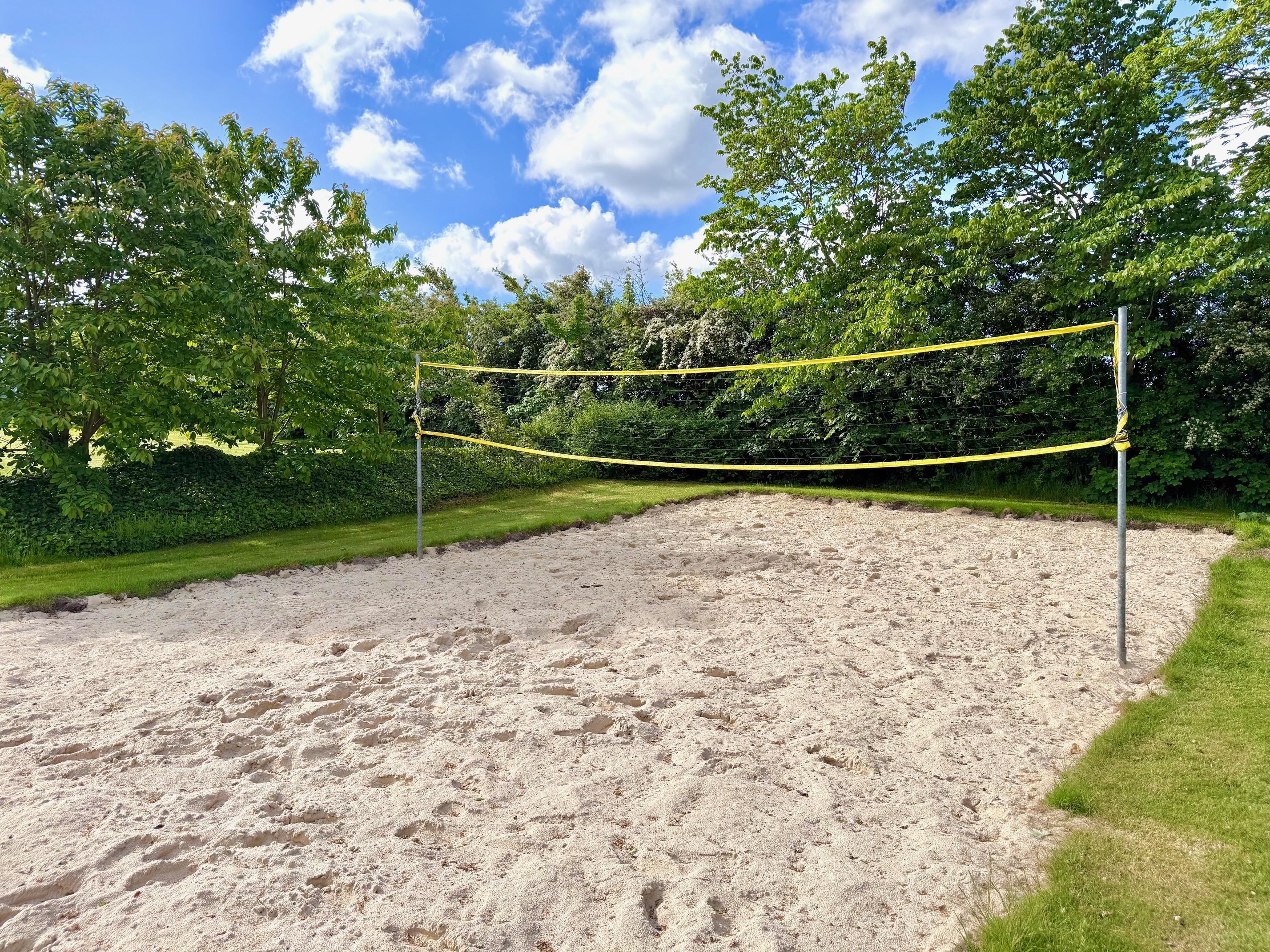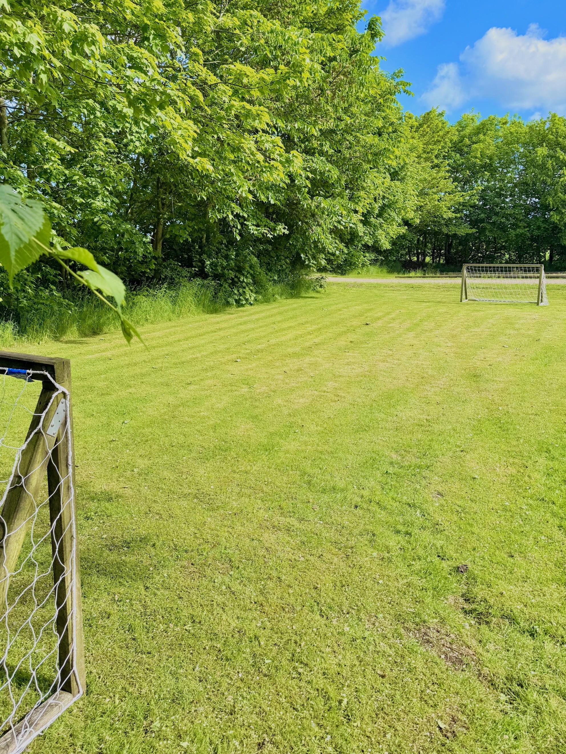 Im Freien gibt es Gartenmöbel und einen Grill zur freien Nutzung, sodass die Gemeinschaft nach draußen verlegt werden kann. Es gibt auch große Rasenflächen, die ideal für Fußball oder andere Spiele sind.