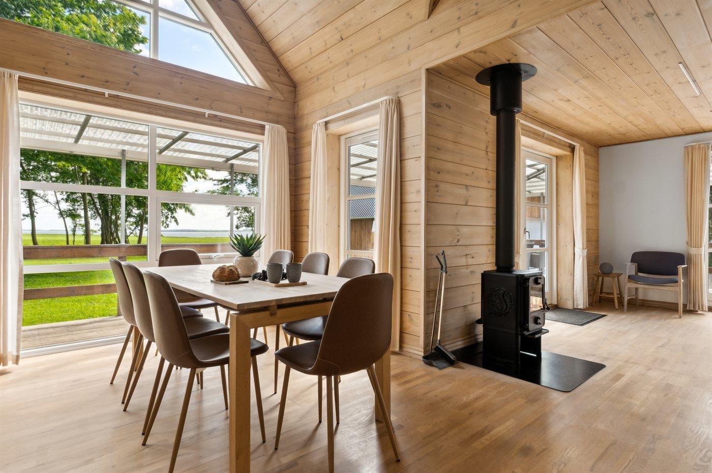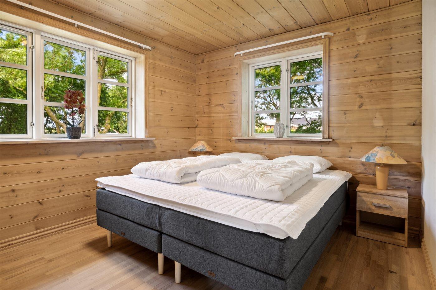 Schönes Sommerhaus mit fantastischer Lage in ländlicher Umgebung – mit Blick auf den Limfjord von beiden Seiten des Hauses. Das Sommerhaus ist für 8 Personen und 1 Kind bis 3 Jahre geeignet. Es gibt insgesamt 4 Schlafzimmer. Die Schlafplätze sind aufgeteilt in: 6 Schlafplätze in Doppelbetten. Schlafmöglichkeiten für 2 Personen in Etagenbetten. Zusätzlich gibt es 1 Stk. Kinderbett In 4 der Schlafzimmer gibt es Fußbodenheizung.