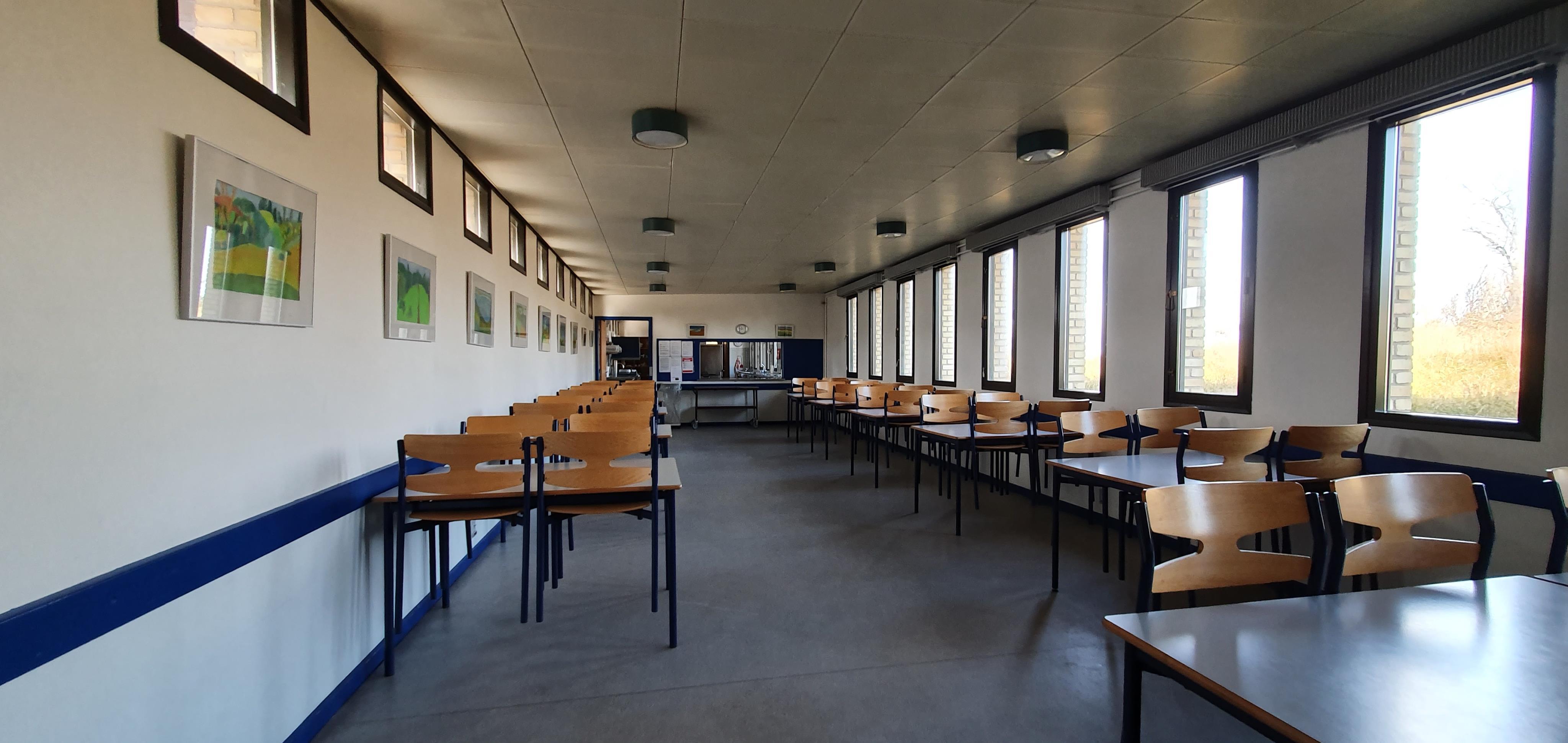 Die Ferienlager Schule ist ein durchgehendes Gebäude in vier versetzten Ebenen.
