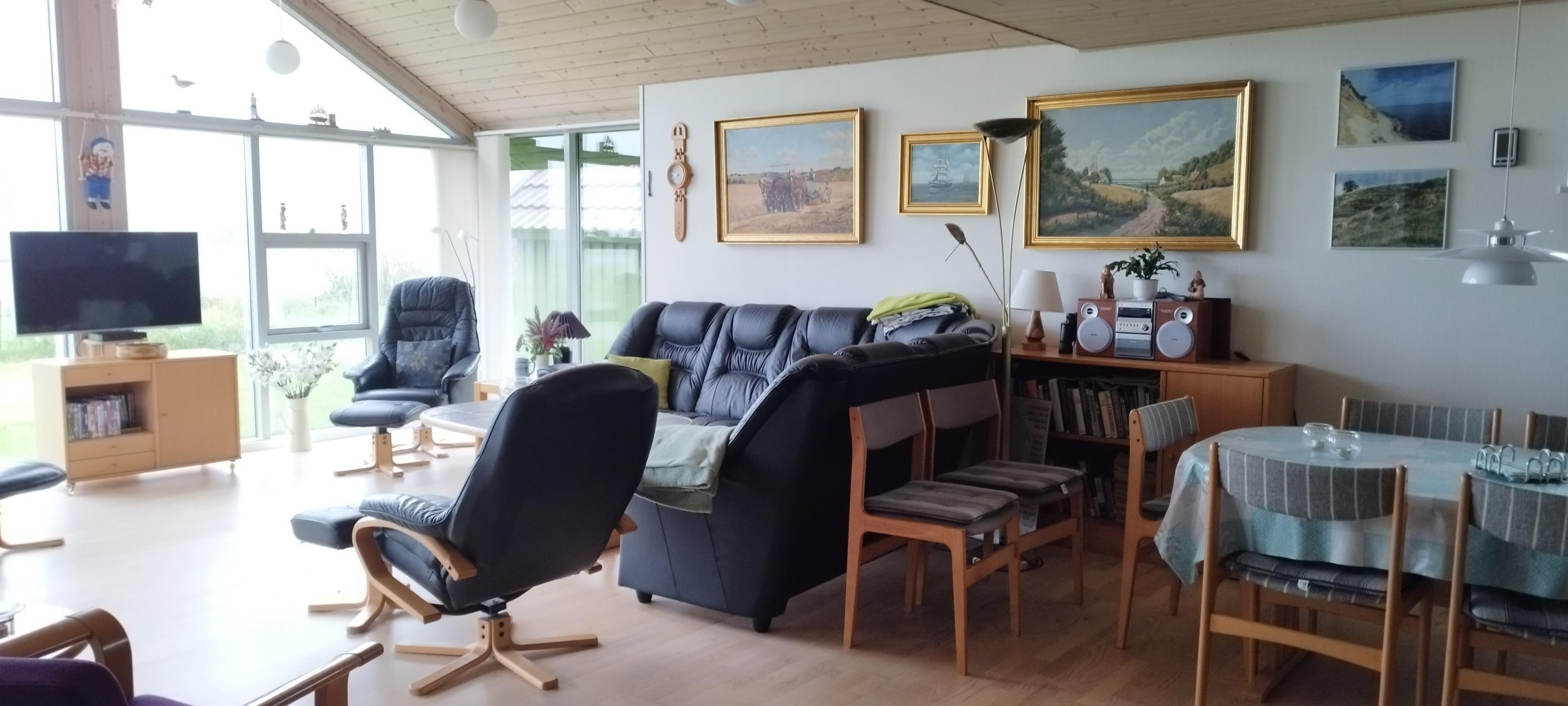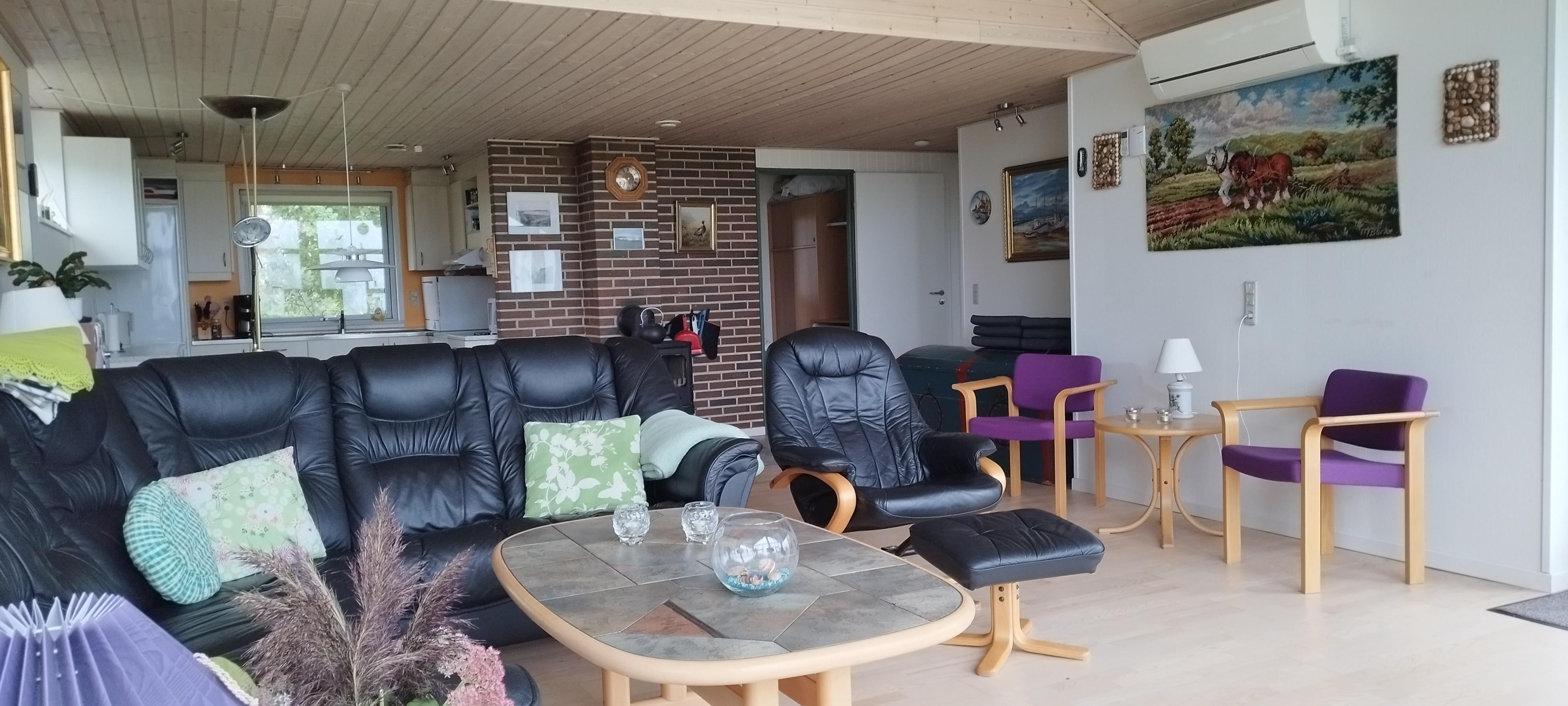 Schönes Ferienhaus mit guter Lage in einem kleinen Ferienhausgebiet auf Nordmors, in der Nähe von Feggesund. Es gibt einen schönen Blick über den Limfjord und das Haus liegt auf einem 830 m² großen Naturgrundstück. Das Grundstück ist zu benachbarten Häusern geschlossen und bietet große Freiflächen. Es gibt 3 Zimmer, eines mit einem Doppelbett und zwei mit jeweils 2 Betten. Große Wohnküche mit schöner Aussicht. Das Badezimmer wurde 2013 mit Fußbodenheizung renoviert. Ein Kinderbett und ein Hochstuhl sind vorhanden. Es gibt 2 Terrassen mit Gartenmöbeln
