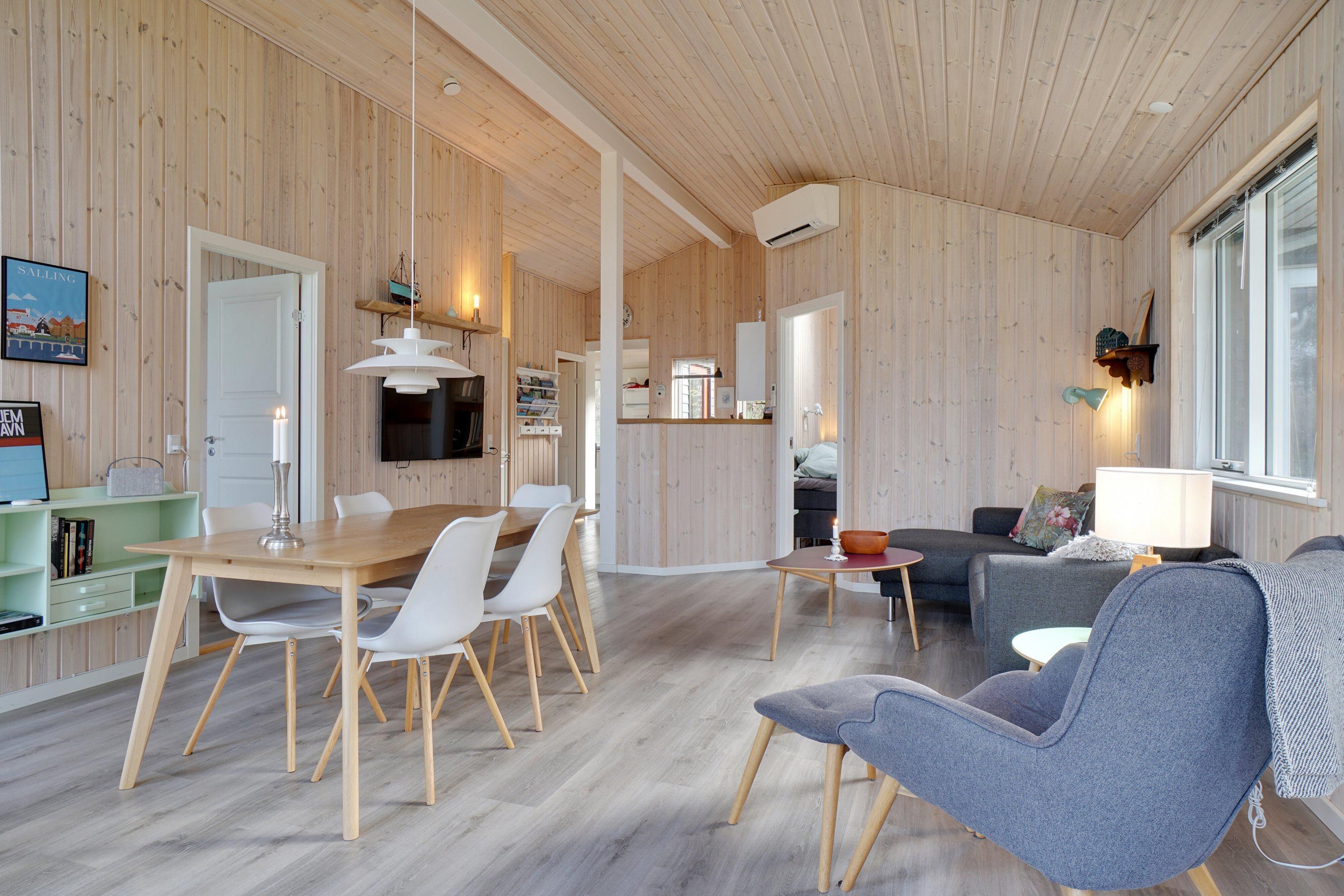 Schönes Ferienhaus in attraktivem Ferienhausgebiet auf Mors. Es bietet 3 Zimmer, eines mit db. Bett und zwei mit ¾ db. Bett. Zusätzlich gibt es im Wohnzimmer eine Schlafnische mit Platz für 2 Kinder. Das Haus ist aus dem Jahr 2017 und wirkt hell und freundlich. Großer schöner Garten, offene und überdachte Terrassen. Nur 200m zum Strand mit Badesteg. Das Haus liegt in der Nähe vom Sillerslev Hafen, der ein kombinierter Handels- und Sportboothafen ist. Der beste Badestrand der Insel mit Badesteg. Im Sommer hat das Café geöffnet. Der Kulturkaufmann befindet sich auch in Sillerslev, und hier finden regelmäßig Konzerte usw.