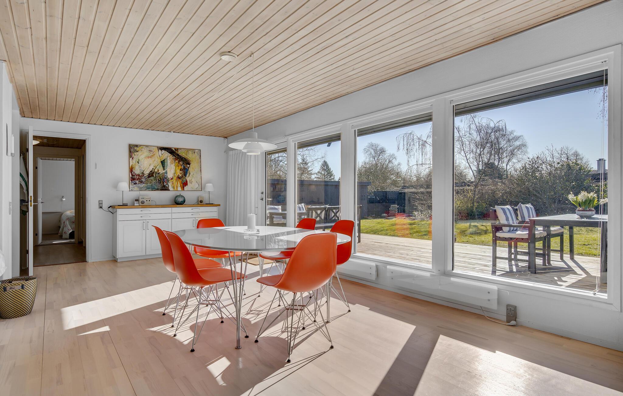 Treten Sie ein und fühlen Sie sich sofort wohl in den hellen, holzgetäfelten Räumen dieses einladenden Ferienhauses unweit des langen Sandstrands von Munkerup. Kochen Sie Ihre Lieblingsgerichte in der bestens ausgestatteten Küche und genießen Sie diese im gemütlichen Essbereich mit Blick in den grünen Garten. Entspannen Sie abends auf der großzügigen Sofalandschaft am prasselnden Kaminfeuer und verbringen Sie gesellige Stunden bei Gesellschaftsspielen oder einem spannenden Film.