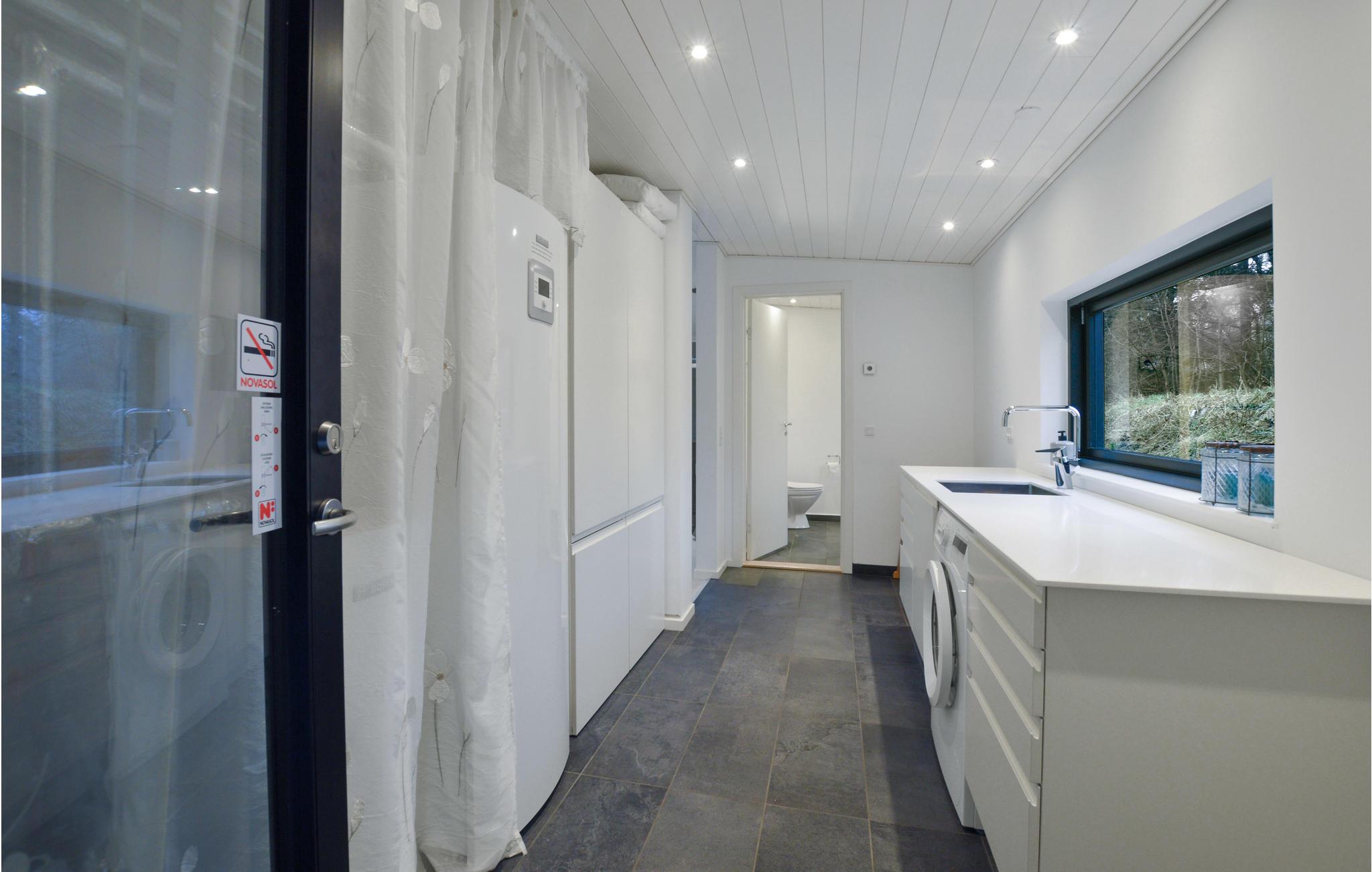 In diesem wundervollen Ferienhaus findet eine große Familie Platz. Das Haus macht einen modernen, geschmackvollen Eindruck und ist hell und offen gestaltet. Die geräumige Wohnküche ist offen und beinhaltet einen Essplatz und den Wohnbereich mit Kaminofen. Von hier aus haben Sie Zugang zur überdachten Terrasse. Im Nebengebäude, das Sie über die Terrasse erreichen, finden Sie zwei Schlafzimmer mit gemütlichen Schlafplätzen.