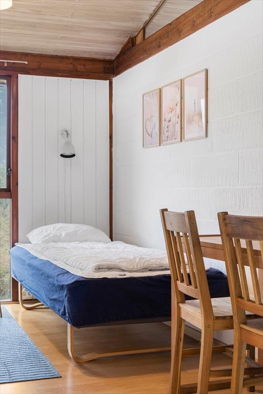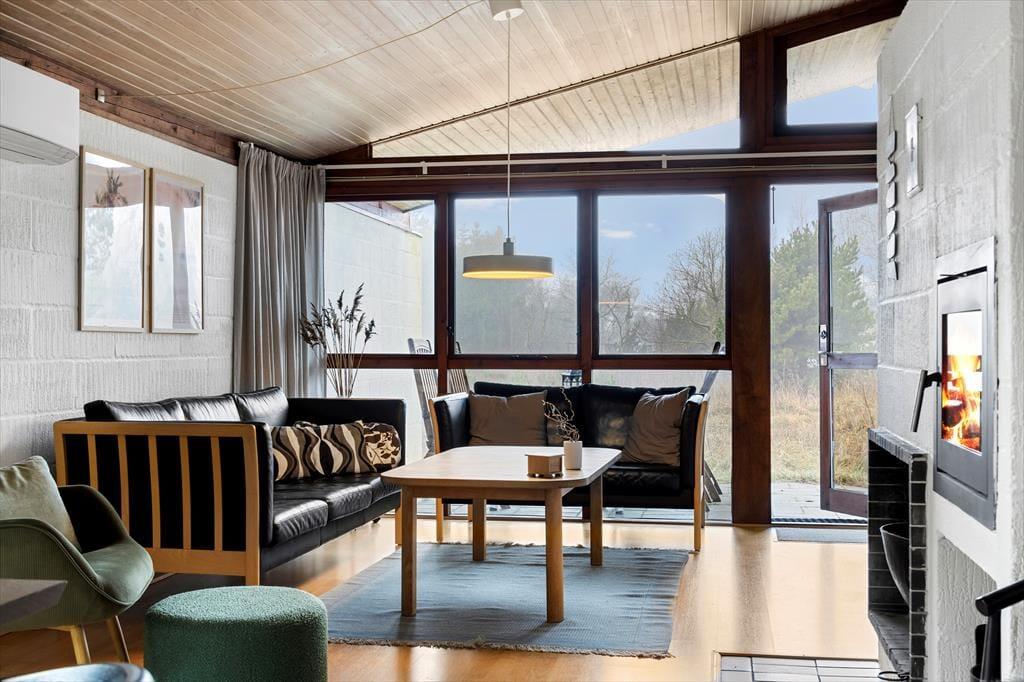 Wenn du die Tage in einem ganz ruhigen Tempo verbringen möchtest, hast du das perfekte Ferienhaus gefunden. Mit seiner angenehmen Atmosphäre und der komfortablen Einrichtung lädt das Wohnzimmer dazu ein, dass du und deine Lieben Bücher lesen, Kaffee trinken und Puzzles legen – oder was auch immer ihr euch in der Ferienzeit wünscht. Der eingebaute Kamin ist ein gemütliches Detail im Wohnzimmer, und die offene Küche ist mit allem Notwendigen ausgestattet, um Mahlzeiten zuzubereiten. Das Badezimmer ist wie die übrigen Räume in hellen Farbtönen gehalten, und in den drei Schlafzimmern gibt es insgesamt Schlafplätze für sechs Personen. Wenn du einen oder zwei Hunde mit in den Urlaub nehmen möchtest, sind sie im Haus ebenfalls willkommen.