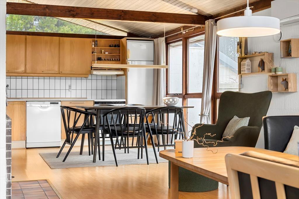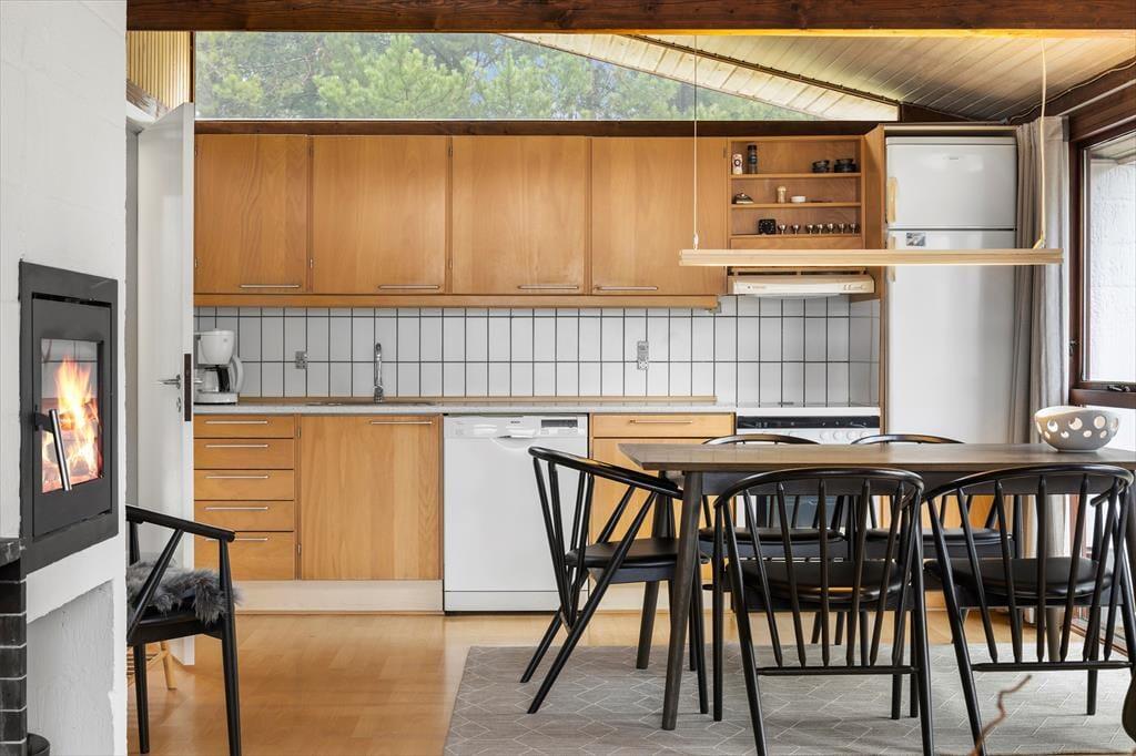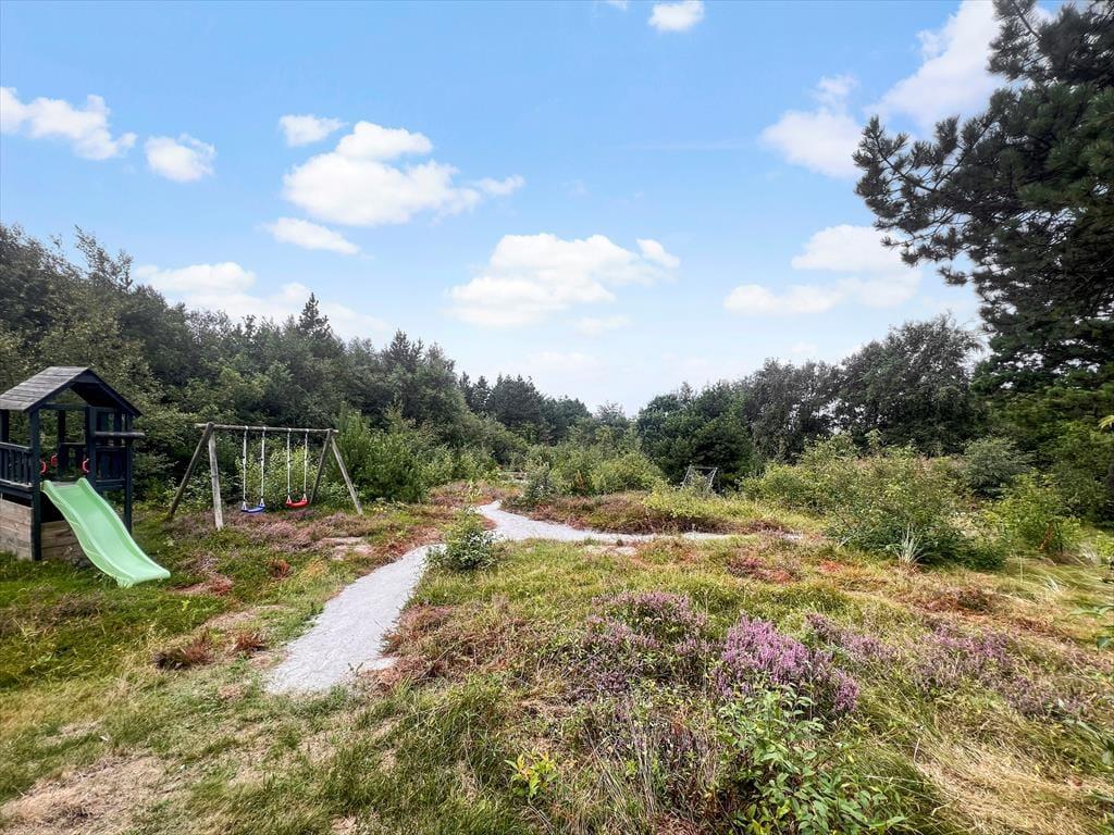 Das Naturgrundstück ist mit seinen 2500 m² angenehm groß, und es ist wunderbar, den Blick auf lila Heidepflanzen, orange-rote Ebereschen und stolze Kiefern zu genießen, während du dich draußen entspannst. Inmitten all des Grüns steht eine Schaukel, und auf der Terrasse gibt es einen Sandkasten, sodass auch die jüngsten Feriengäste Spaß haben. Die große und offene Terrasse liegt günstig zur Sonne, und sie ist zudem von einem Zaun auf mehreren Seiten geschützt, sodass sie eine friedliche Oase ist, wenn du dich in einen Liegestuhl legen oder dich mit deiner Familie um den Gartentisch versammeln möchtest. Außerdem befindet sich eine überdachte Terrasse direkt am Wohnzimmer, und auch dies ist ein herrlicher Ort, um sich niederzulassen.