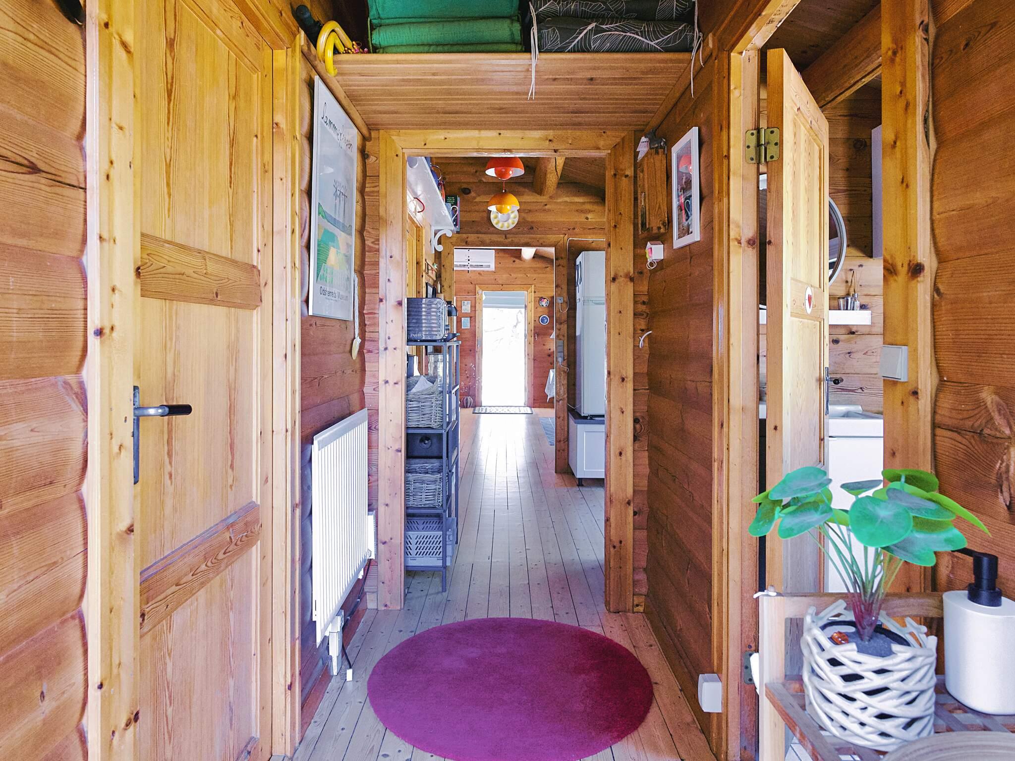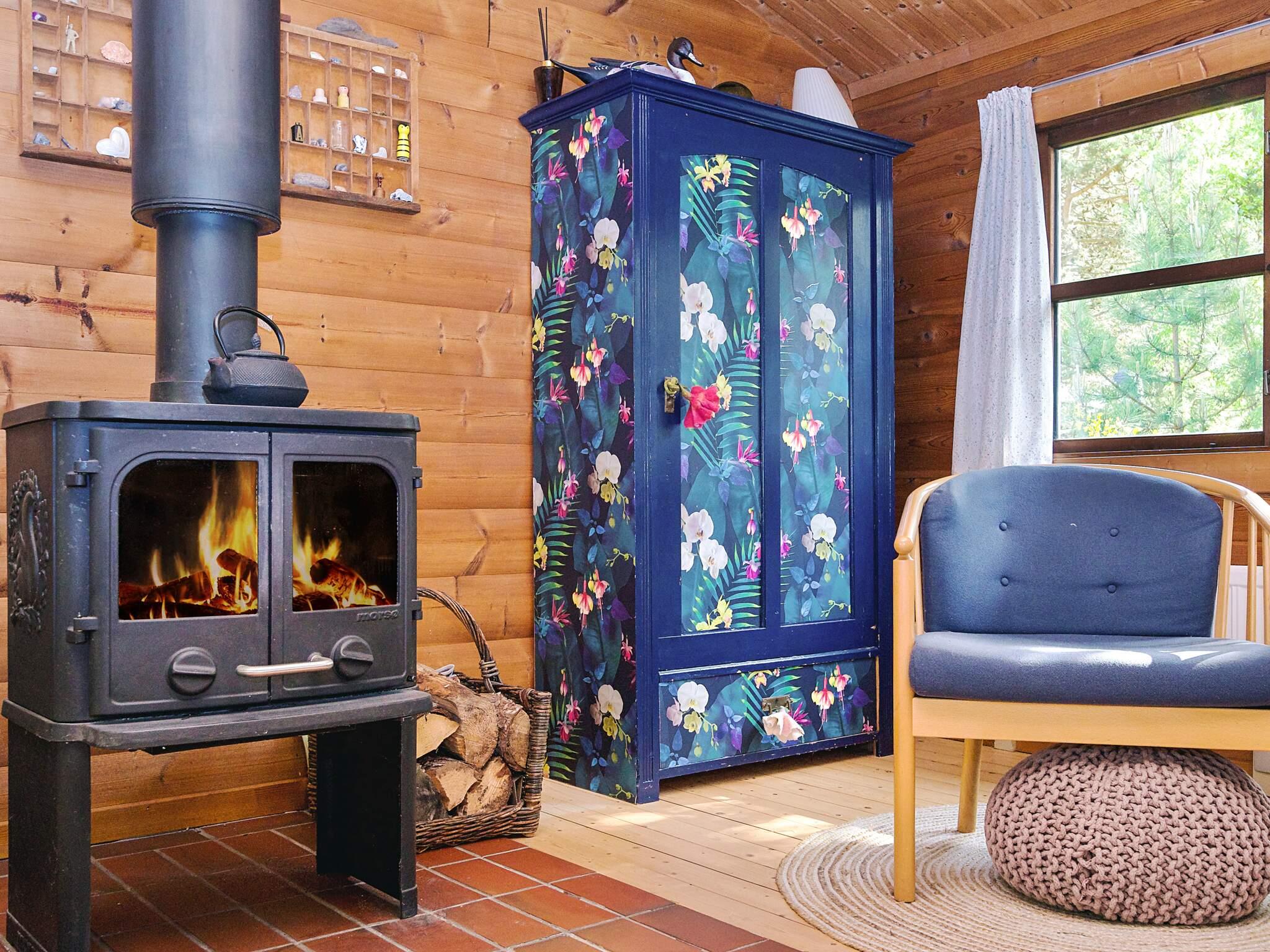 Das Wohnzimmer: Das helle und geräumige Wohnzimmer ist mit bequemen Möbeln und großen Fenstern ausgestattet, die viel Tageslicht hereinlassen. Hier finden Sie einen gemütlichen Holzofen, der an kühleren Tagen für Wärme und Atmosphäre sorgt. Es gibt einen Fernseher mit Chromecast und ein Radio, so dass es viele Möglichkeiten zur Entspannung und Unterhaltung für die ganze Familie gibt.