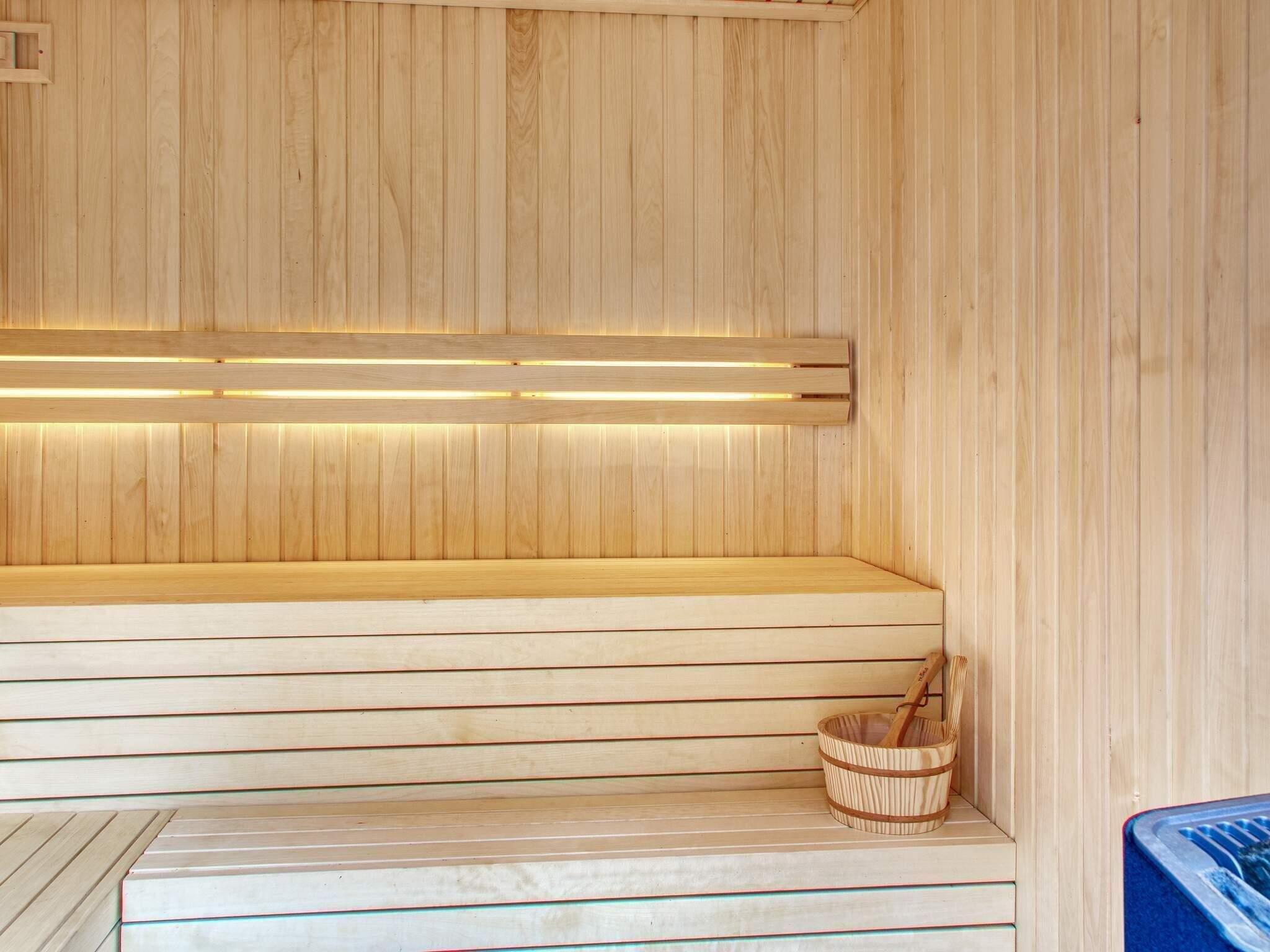 Draußen erwartet Sie eine große Holzterrasse mit Gartenmöbeln, Sonnenliegen und Grill – ideal für lange Sommerabende unter freiem Himmel. Zudem gibt es eine Feuerstelle, Schaukeln und Spielgeräte für die Kleinen.