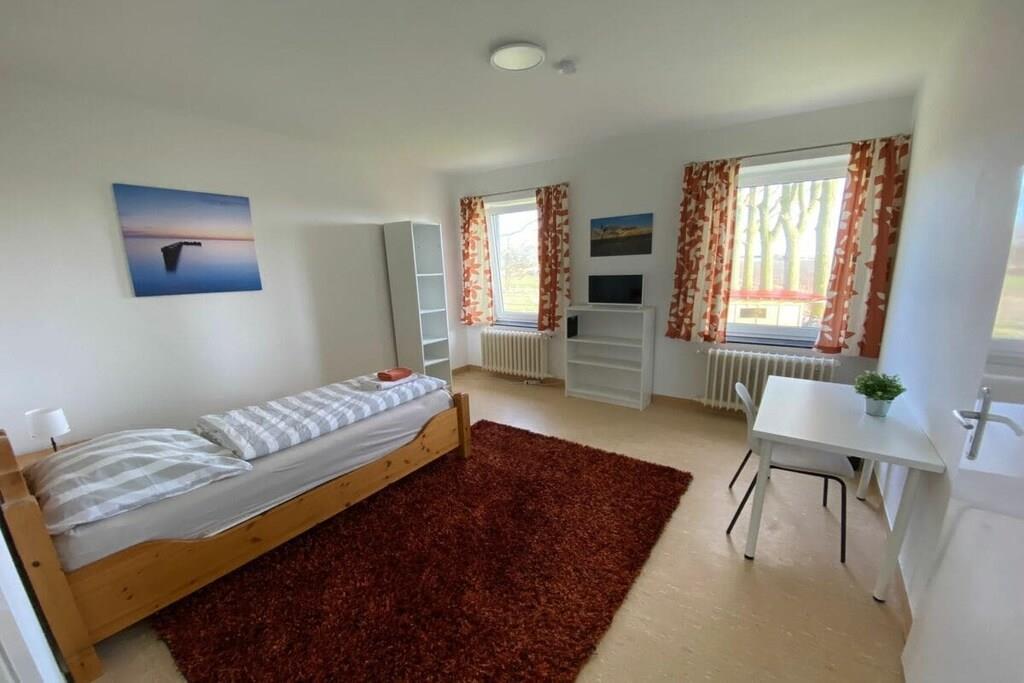 Das Haus Eco Lodge liegt direkt vor den Toren Büsums und ist gut angeschlossen an öffentliche Verkehrsmittel. Mit der nächsten Bushaltestelle in 100 Metern Entfernung und dem nächsten Bahnhof in 1,8km Entfernung, ist die Anreise und Mobilität vor Ort leicht zu bewältigen. Private Parkplätze stehen für Sie direkt vor dem Gebäude kostenlos zur Verfügung. 7 Schlafräume mit insgesamt 17Betten stehen zur Verfügung. Drei Zimmer mit je vier Betten, ein Zimmer mit einem Einzelbett. Neu ab SOFORT! Zwei Einzelzimmer und ein Doppelzimmer mit eigenem Eingang im gleichen Gebäude, ein Bad, Ein großer Essraum mit Lounge Bereich, sowie eine Terrasse können für gemeinsame Mahlzeiten oder Grillabende genutzt werden. Die beiden Bäder (ein großes und ein kleines Badezimmer) sind neu gefliest und mit neuen Armaturen ausgestattet. Schnelles Internet über Glasfaser steht im Haus zur Verfügung. Hinter dem Haus, dort wo ihre Terrasse liegt, liegt eine circa 3000 m² große Wiese die gerne genutzt werden kann. Neben der Terrasse ist eine Grillhütte, mit Grill.