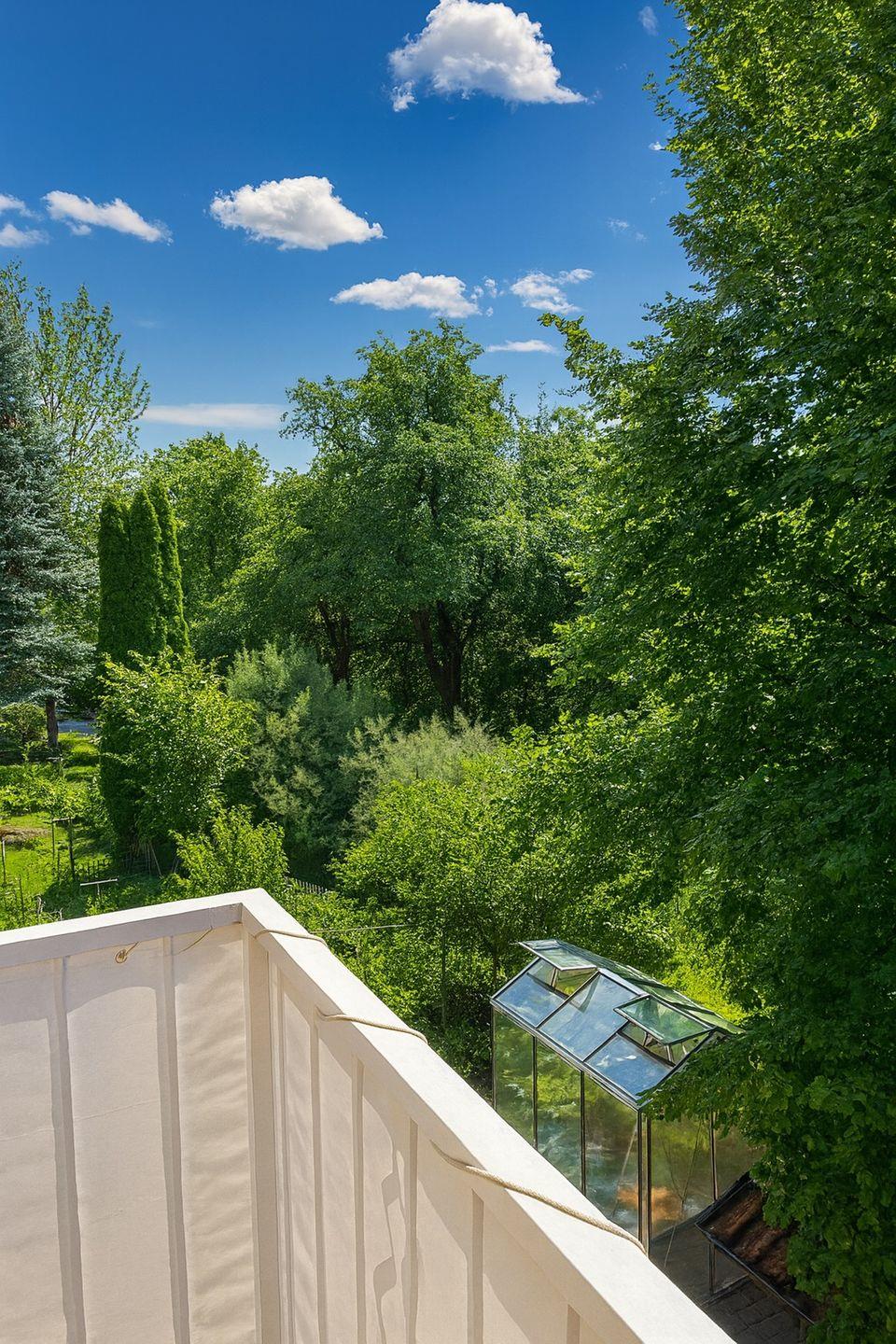 Vom Balkon aus genießen Sie einen schönen Blick ins Grüne – ideal für ein entspanntes Frühstück am Morgen oder einen ruhigen Ausklang am Abend.