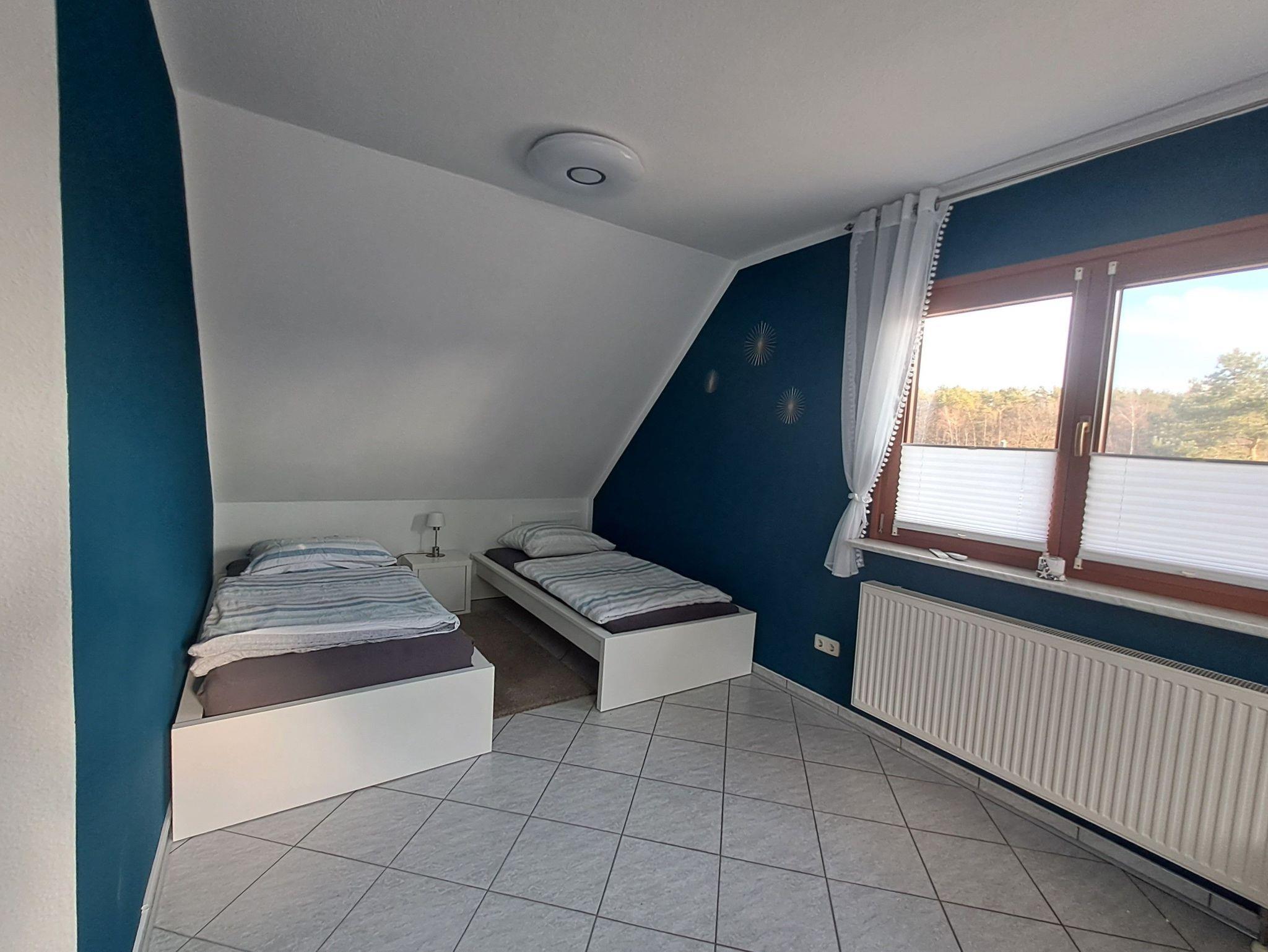 - einem Schlafzimmer mit einem Doppelbett (2 Matratzen a 0,90 m x 2,00 m), 2 Einzelbetten (0,90 x 2,00 m),