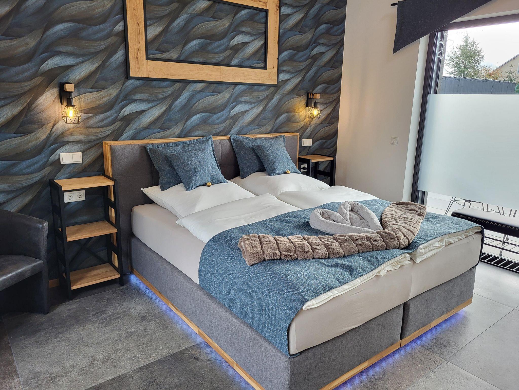 Schlafzimmer Die Wohnung verfügt über zwei Schlafzimmer. Beide sind eingerichtet mit komfortablen Boxspringbetten für eine erholsame Nacht.