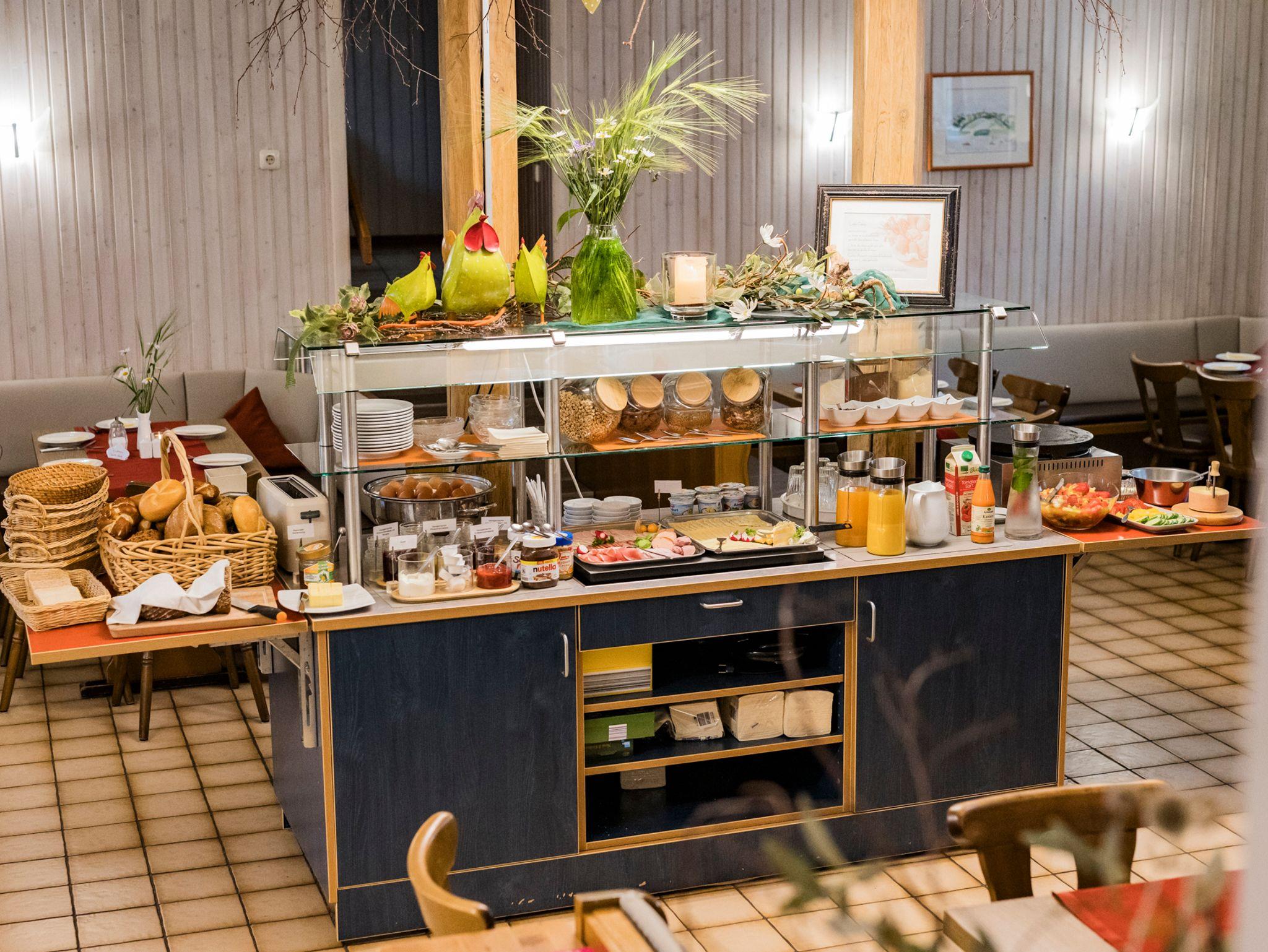 Dazu bieten wir Ihnen ein reichhaltiges Frühstücksbüffet.