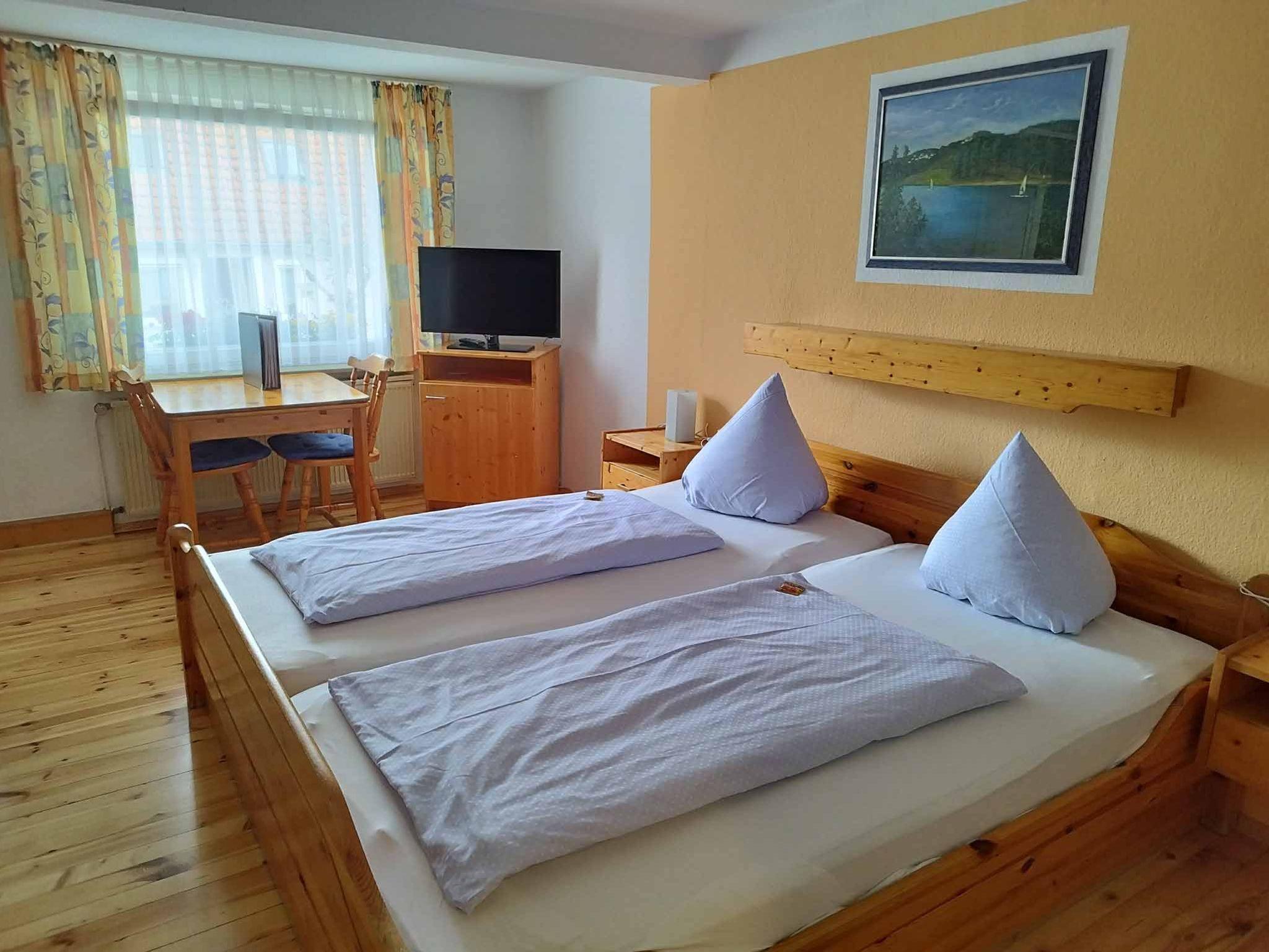 Das gemütlich eingerichtete Zimmer befindet sich in der ersten Etage mit Flachbildfernseher und Kühlschrank.