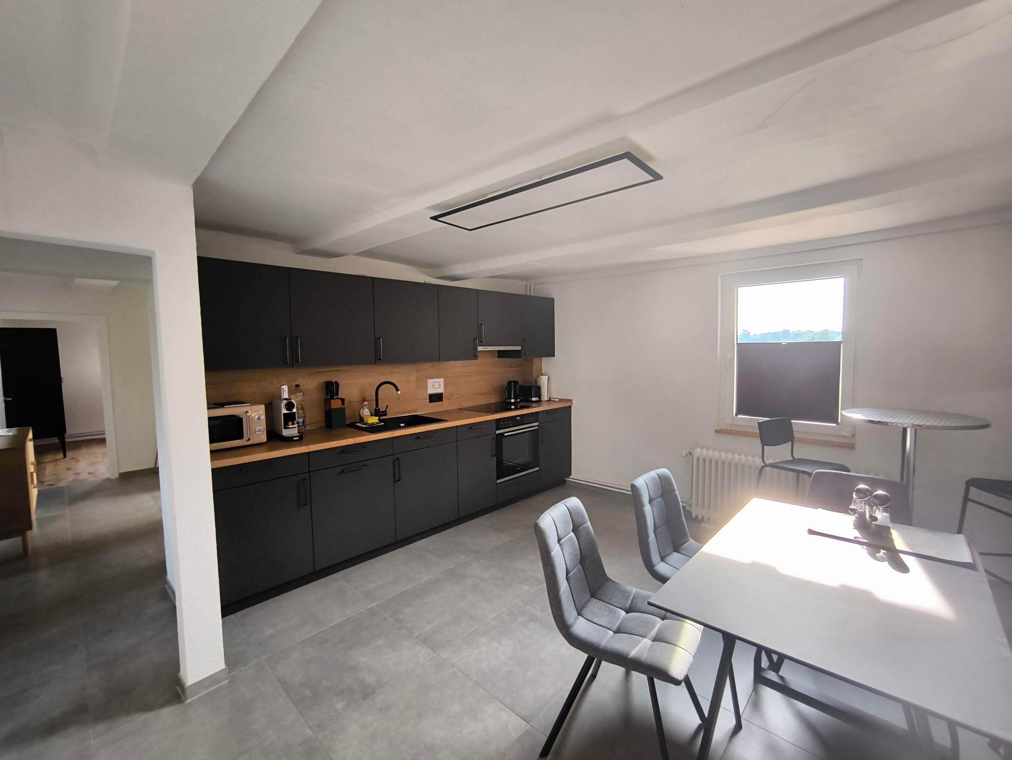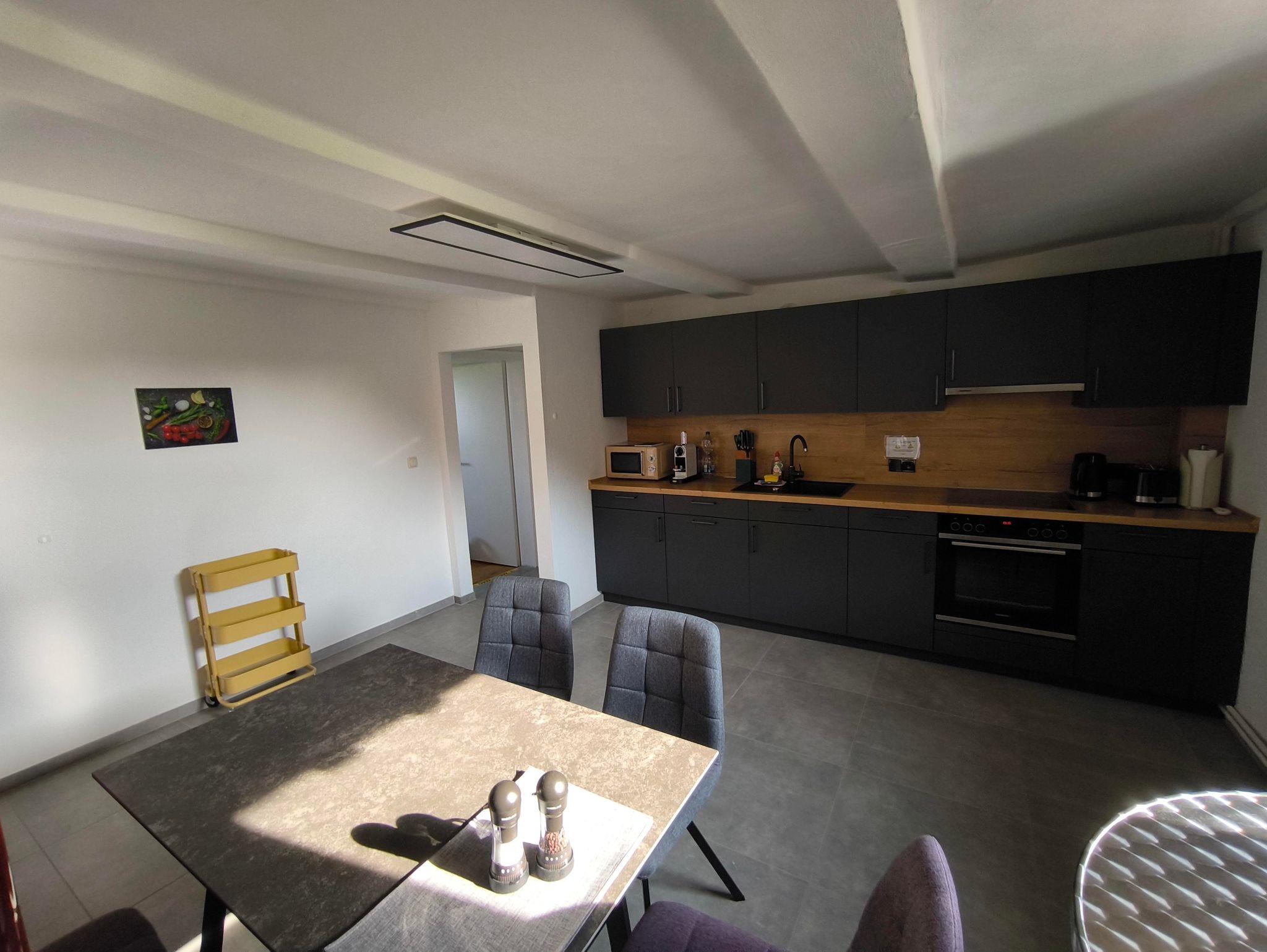 Die vollausgestatte moderne Küche (Induktionskochfeld, Ofen, Geschirrspüler, Microwelle, Kühlschrank mit Gefrierfach, etc.) ist groß genug, um mit der Familie nicht nur Essen zuzubereiten, sondern auch gemütlich zu speisen. Diese Wohnung bietet auf der Etage einen kleinen Wintergarten mit sehr schönem Ausblick.