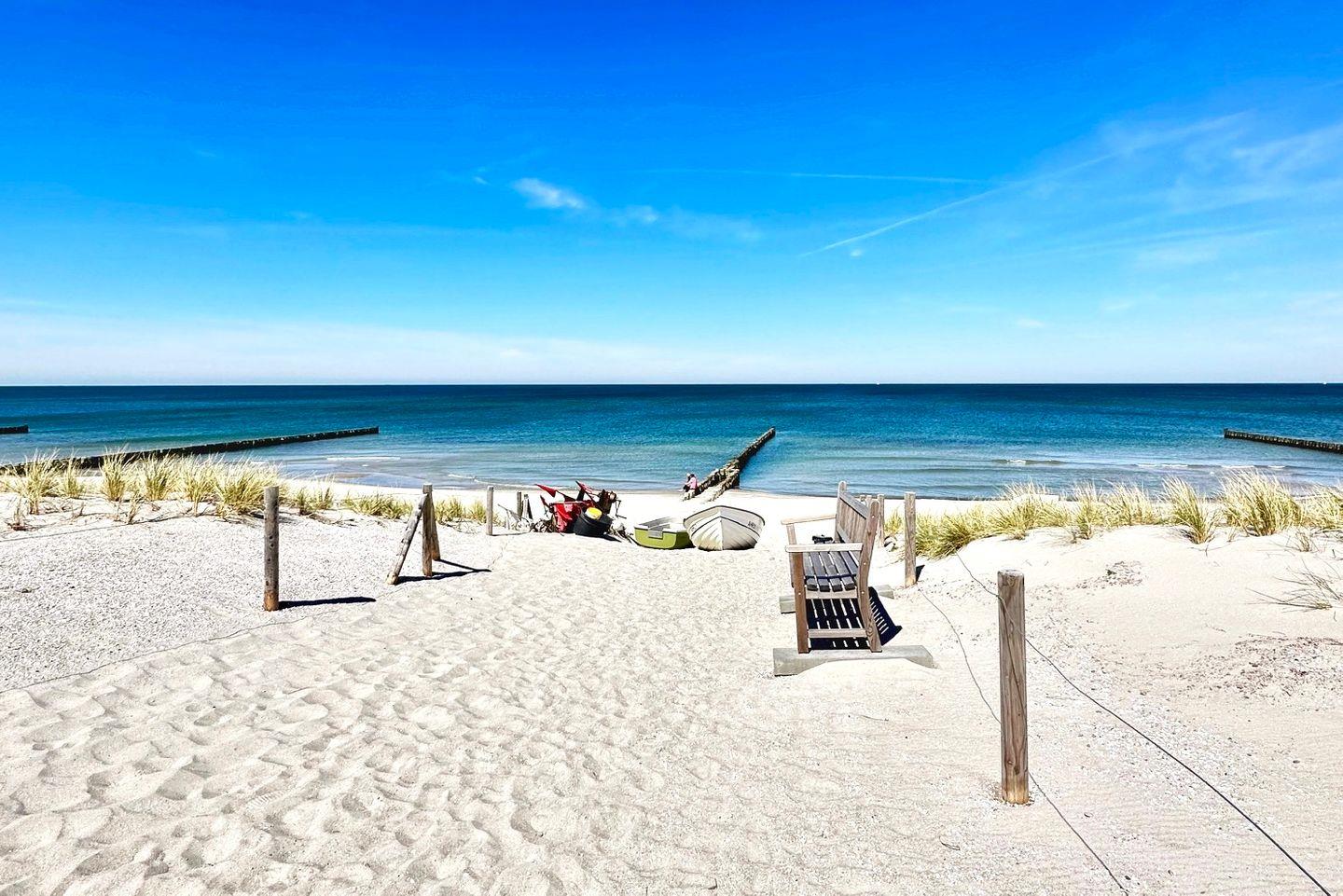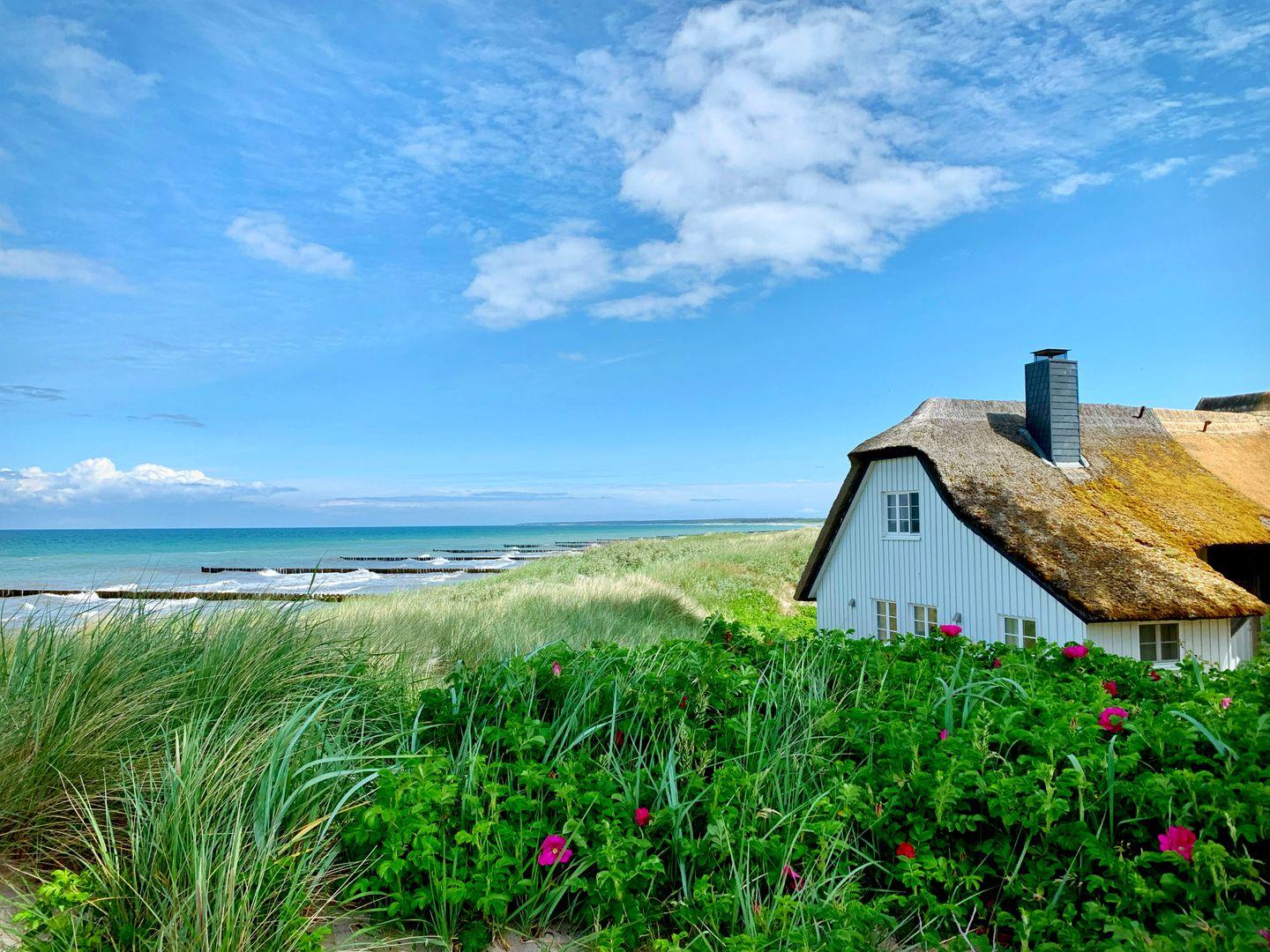 Hier beginnt dein Urlaub. Nur wenige Schritte trennen dich vom feinsandigen Strand und dem idyllischen Bodden. Die ruhige Lage bietet dir Natur, Entspannung und echtes Küstenflair. Perfekt für Spaziergänge, Radtouren oder entspannte Stunden am Wasser. Alles Wichtige für den Alltag ist schnell erreichbar: Supermarkt, Fahrradverleih, Cafés und Restaurants befinden sich in der Nähe. Auch Galerien sowie das Kunstmuseum Ahrenshoop sind gut zu erreichen.