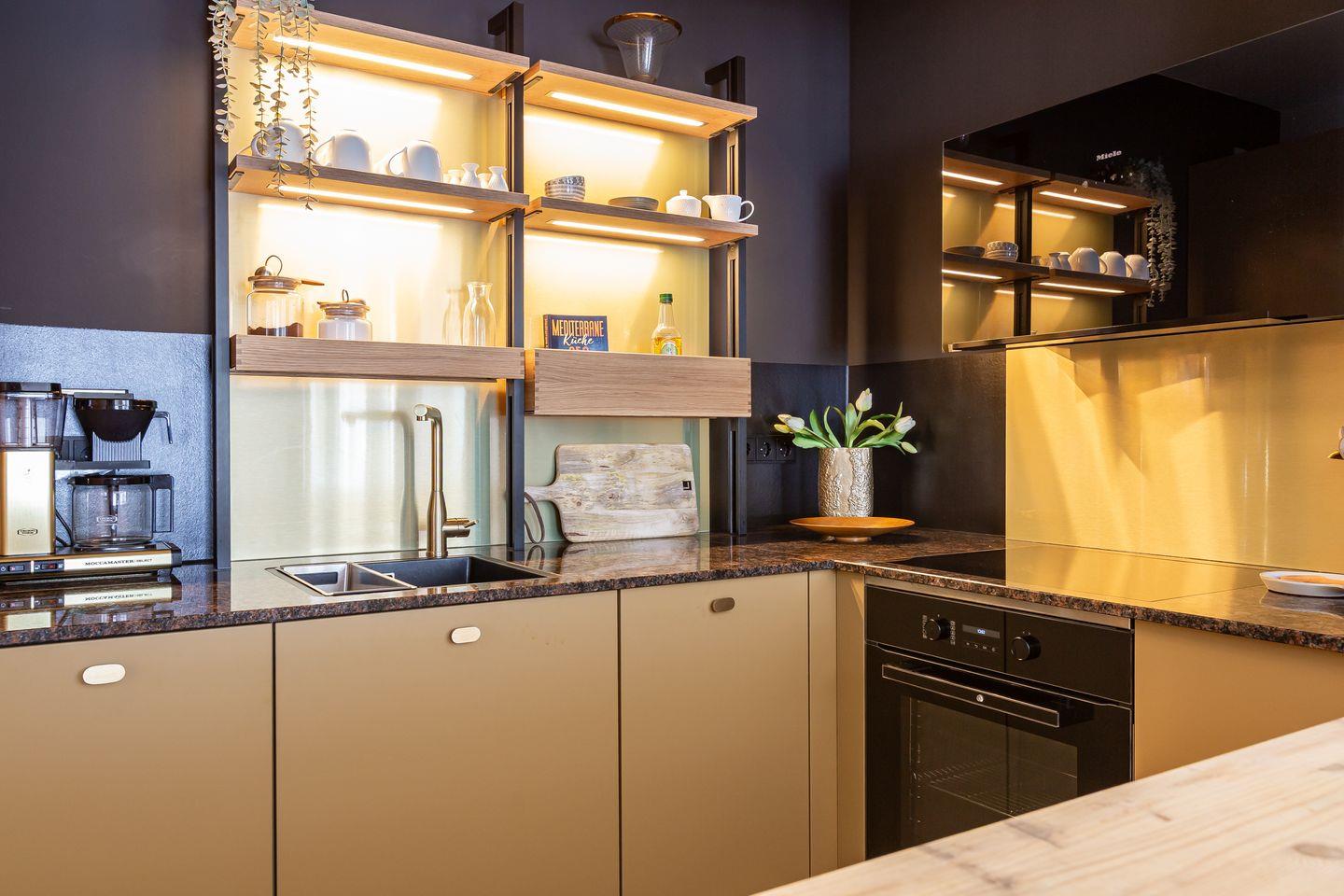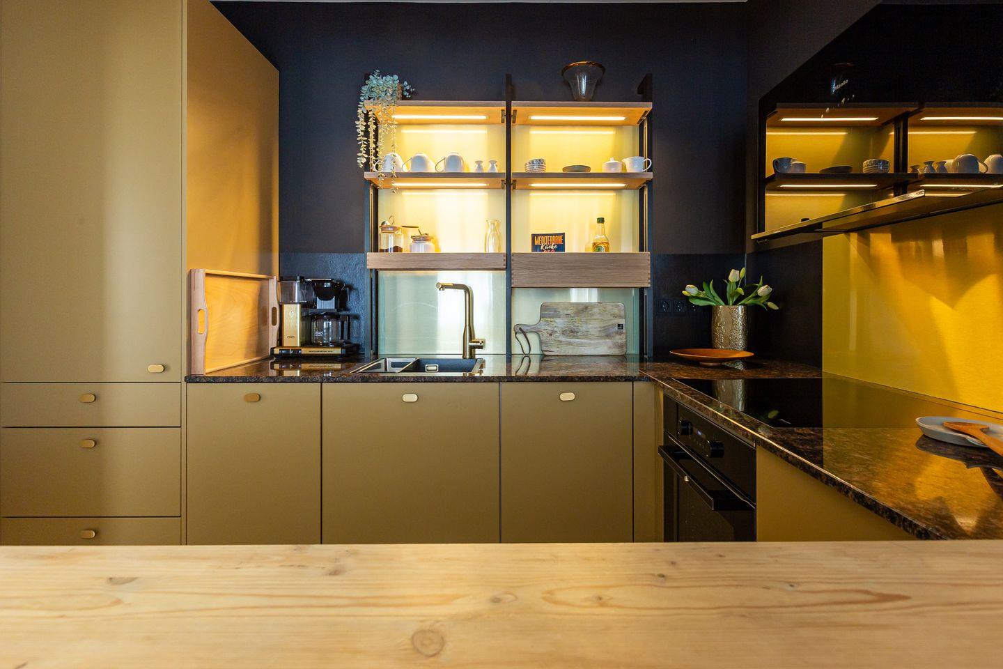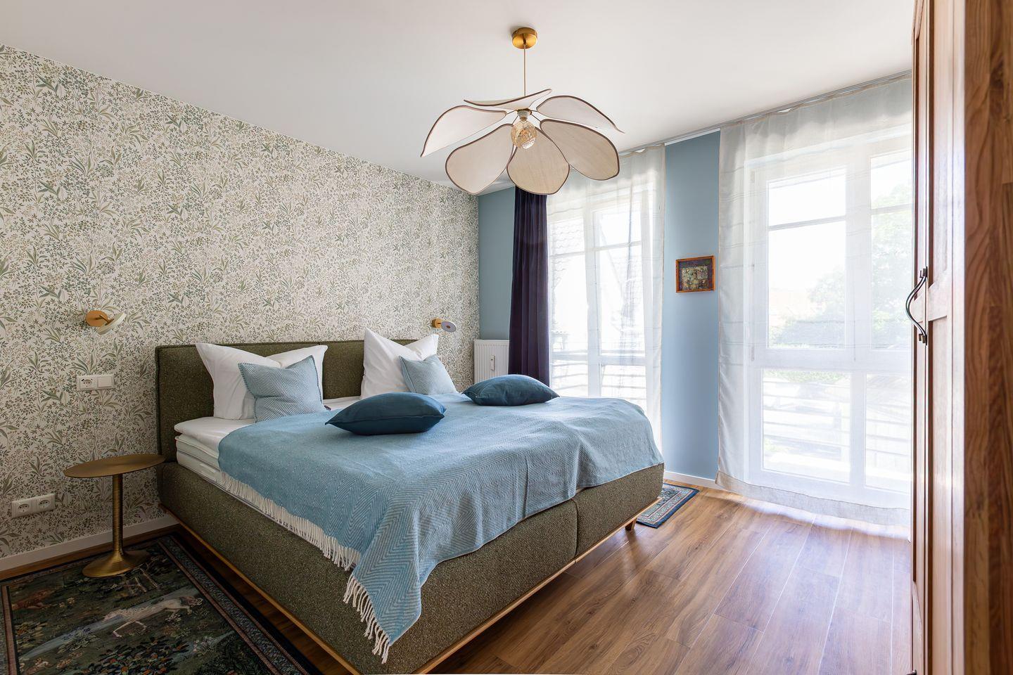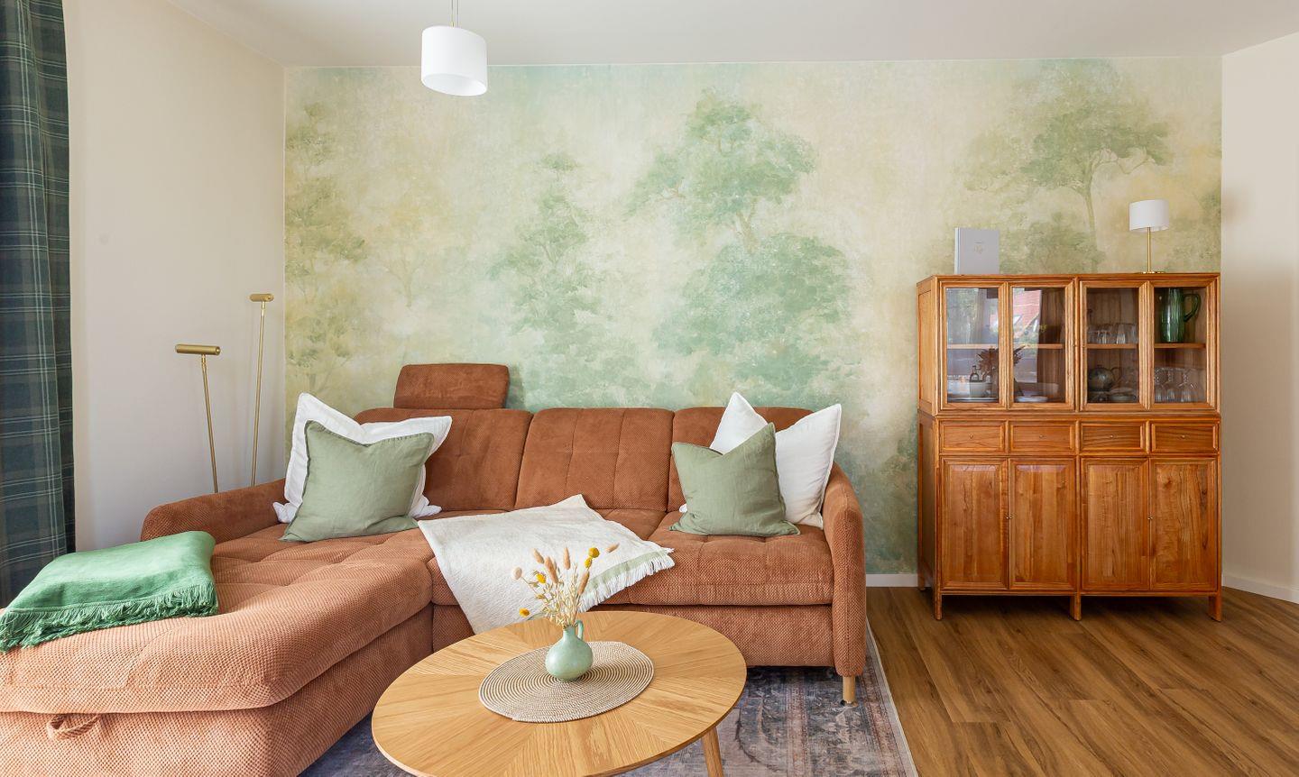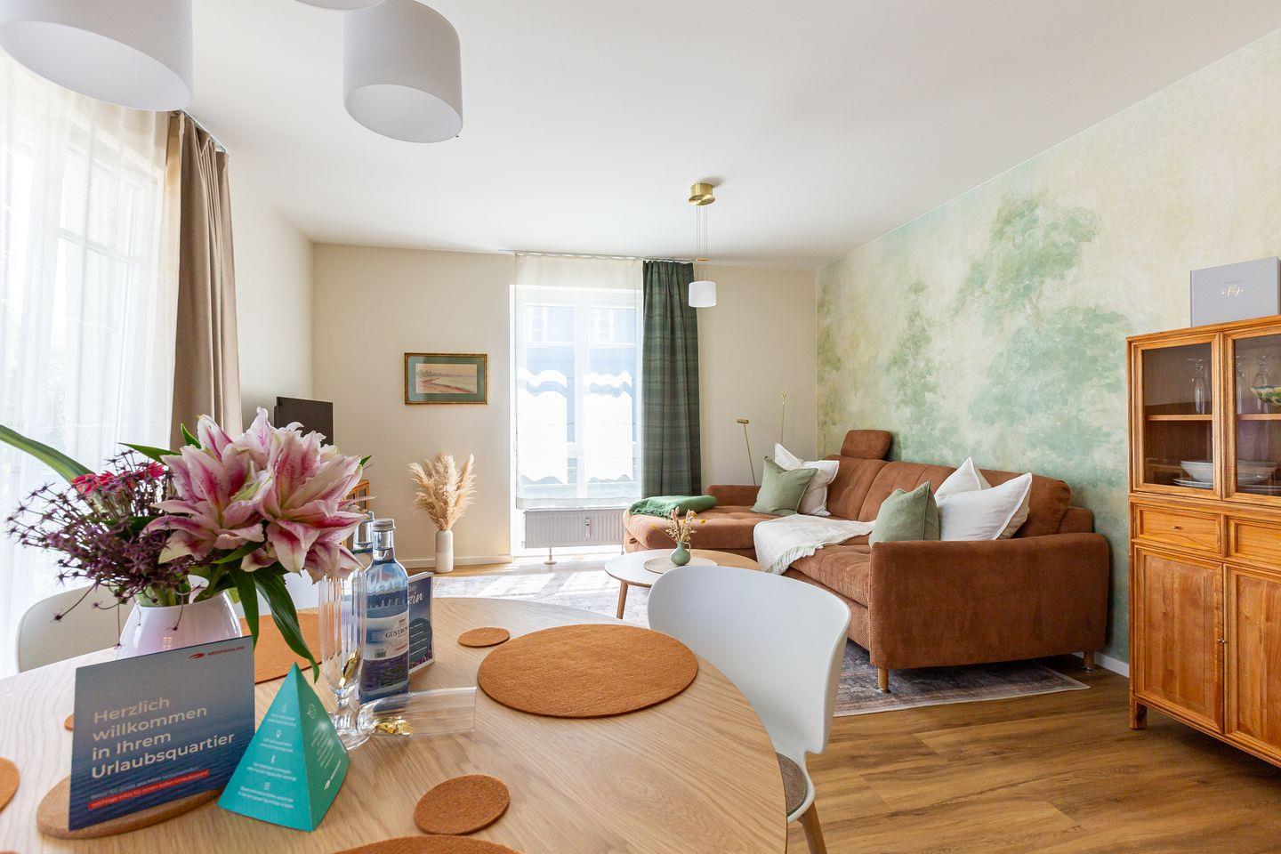 De Ruyter verbindet stilvolles Interior mit lässigem Ostseeflair. Die Ferienwohnung ist hochwertig eingerichtet im modernen Retro Stil. Warme Erdtöne wie Rost, Salbeigrün und Gold treffen auf natürliche Materialien wie Holz, Leinen und edles Messing. Ein geschmackvoller Mix, der Gemütlichkeit und Designbewusstsein auf den Punkt bringt. Das Wohnzimmer ist das Herzstück der Wohnung: hell, offen und mit viel Liebe zum Detail gestaltet. Die offene Küche mit modernsten Miele Geräten und einer praktischen Durchreiche macht das Kochen zum entspannten Miteinander. Vom Wohnzimmer aus geht es direkt auf den Balkon, ideal, um den ersten Kaffee des Tages dort zu genießen. Auch das Schlafzimmer hat Zugang zu einem kleinen Balkon. Klare Linien, natürliche Materialien und eine stimmige Farbwelt schaffen auch hier eine Atmosphäre, die ganzjährig für maximale Erholung und ein traumhaftes Urlaubsgefühlt steht.