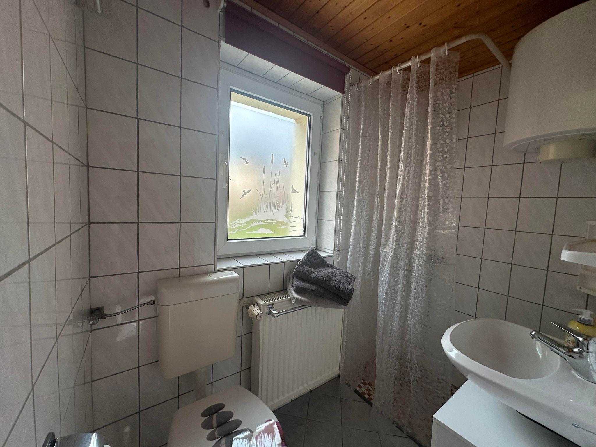 Das Badezimmer bietet Dusche und WC.