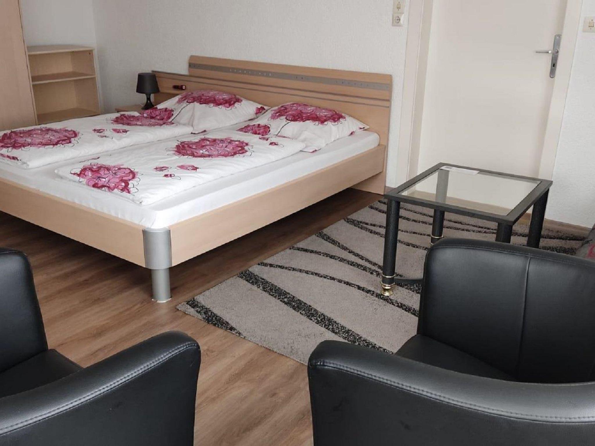 Die Ferienwohnung mit separatem Eingang befindet sich im Erdgeschoss. Sie bietet auf 50 Quadratmetern Platz für bis zu 2 Personen. Die separate Küche ist mit Backofen, Kaffeemaschine, Kühlschrank, Mikrowelle, Wasserkocher und Toaster voll ausgestattet. Der Wohn- und Schlafbereich ist mit einem Doppelbett, einem Kleiderschrank, zwei Sesseln und TV ausgesattet. Das Badezimmer verfügt über eine Badewanne, zwei Waschbecken, WC und Fön. Vom Badezimmer aus haben Sie Zugang zur Sitzecke im Garten mit Gartenmöbeln und Sonnenschirm.