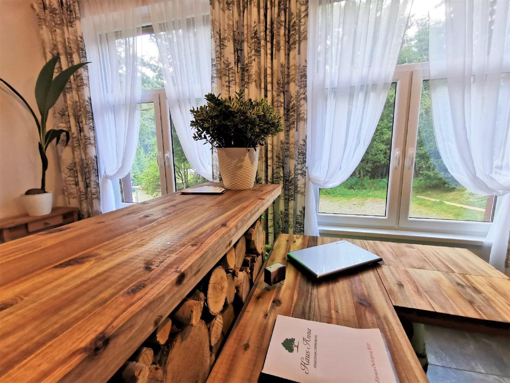 Im Haus Anna wird Gastfreundschaft ganz großgeschrieben und jeden Tag gelebt. Ganz nach dem Motto, man komme hier als Gast und gehe als Freund, ist die gesamte Pension so eingerichtet, dass Sie sich überall wohlfühlen. Wir bieten unseren Gästen liebevolle und im typischen Erzgebirge-Flair eingerichtete Einzel- und Doppelzimmer mit Dusche und WC. In allen Zimmern garantiert die Ausstattung einen Komfort auf höchstem Niveau. Bei Bedarf können in den Doppelzimmern zusätzliche Betten dazugestellt werden. Das gesamte Gebäude wurde einer Renovierung unterzogen und besitzt neue Fenster. Paar Sanierungsbereiche sind noch zu sehen (Treppenhaus Außen) sollten aber die nächsten Monate beendet werden. Insgesamt ist das Gebäude fertig und kann genutzt werden. Im gemütlichen und hellen Essraum können unsere Gäste regional zubereitete Mahlzeiten genießen. Auch selbstversorgen sind bei uns gut aufgehoben. Eine kleine Gemeinschaftsküche für Selbstbedienung ist auch vorhanden. Sie möchten allein, zu zweit oder mit der ganzen Familie im Erzgebirge Urlaub verbringen? In unserem inhabergeführten Ferienhaus steht die Tür für alle Gäste offen. Auch Bello und Mieze sind im Haus Anna gern gesehen.