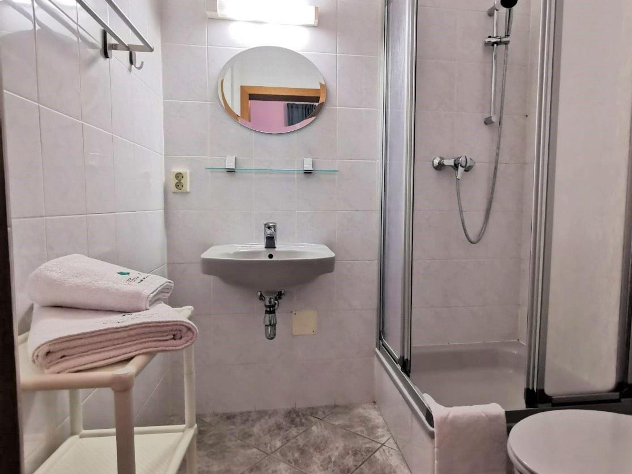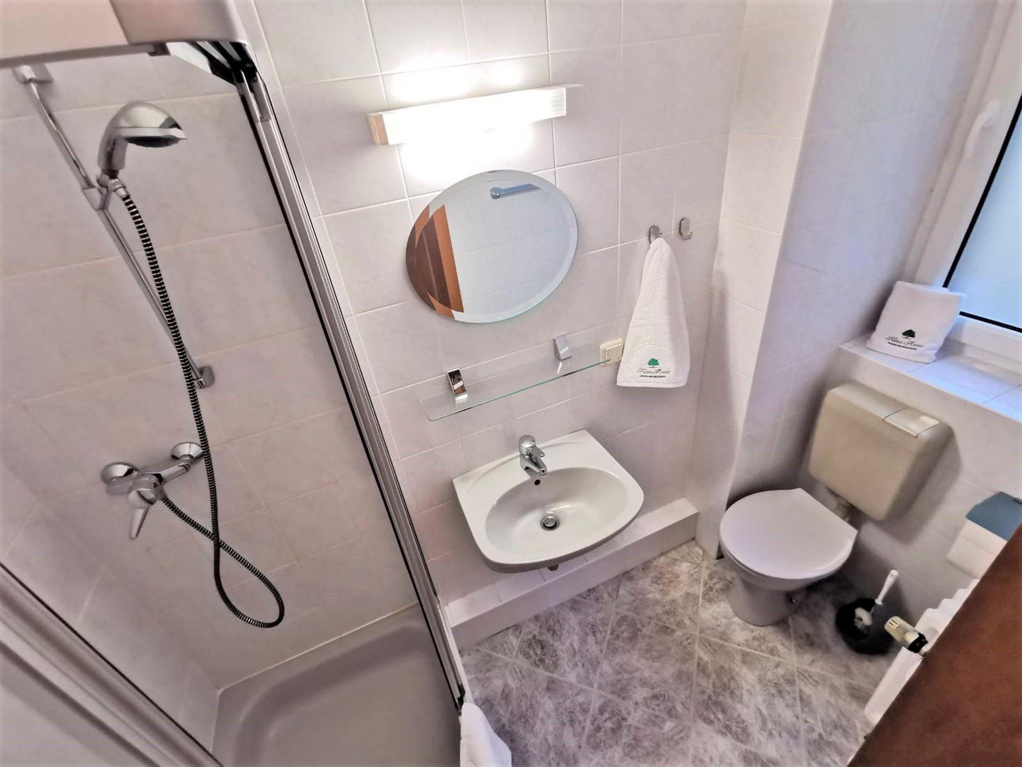 Das Zimmer ist 18 Quadratmeter groß und verfügt über zwei zusammengestellte Einzelbetten, zwei Nachtschränke, einen Schrank sowie einen Fernseher. Selbstverständlich verfügt das Zimmer über ein eigenes Badezimmer mit Dusche, WC und Haartrockner. Bettwäsche und Handtücher sind kostenfrei vorhanden. Rauchen ist nicht gestattet. Privatparkplatz steht kostenfrei an der Unterkunft (Reservierung ist nicht erforderlich) zur Verfügung.