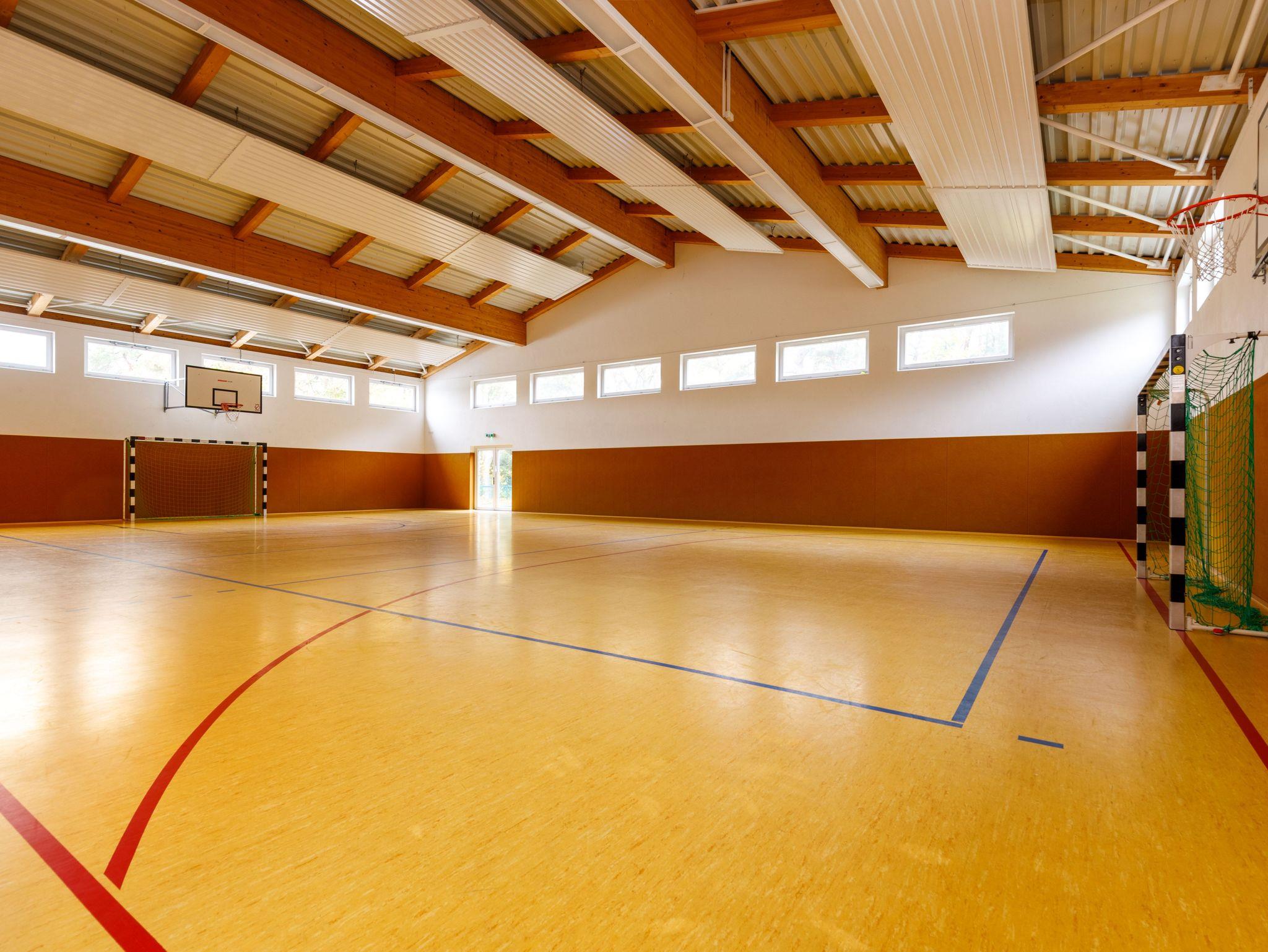 Ein besonderes Merkmal des Feriendorfs sind die umfangreichen Sport- und Gemeinschaftseinrichtungen direkt auf dem Gelände. Gästen stehen ein eigener Fußballplatz, eine Turnhalle sowie ein Fitnessraum zur Verfügung, Möglichkeiten, die in dieser Form in strandnahen Ferienanlagen der Region kaum zu finden sind. Ergänzt wird das Angebot durch mehrere Gemeinschafts- und Tagungsräume, die sich ideal für Gruppenreisen, Seminare, Workshops oder Trainingslager eignen. Ein Grillplatz sorgt zusätzlich für entspannte und gesellige Abende unter freiem Himmel.