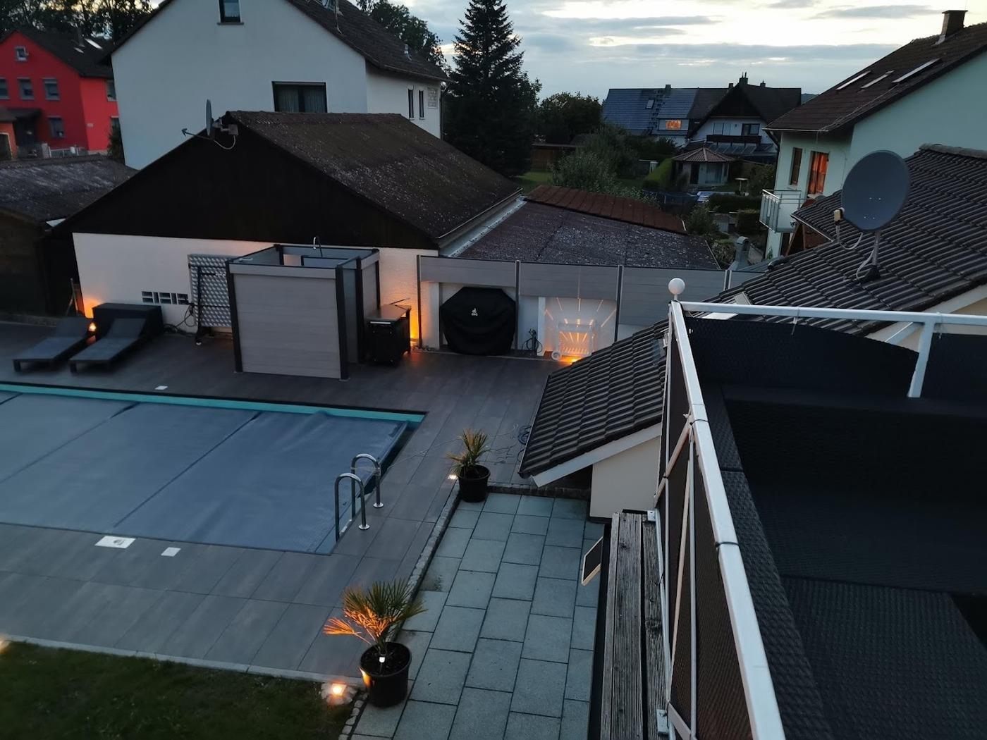Luxuriöse Ferienwohnung zum Entspannen und Genießen. Ferienwohnung / offene große Dachgeschosswohnung mit Balkon, Whirlpool, einem Außenpool mit Außendusche und Sonnenterrasse mit Grill und Garten.