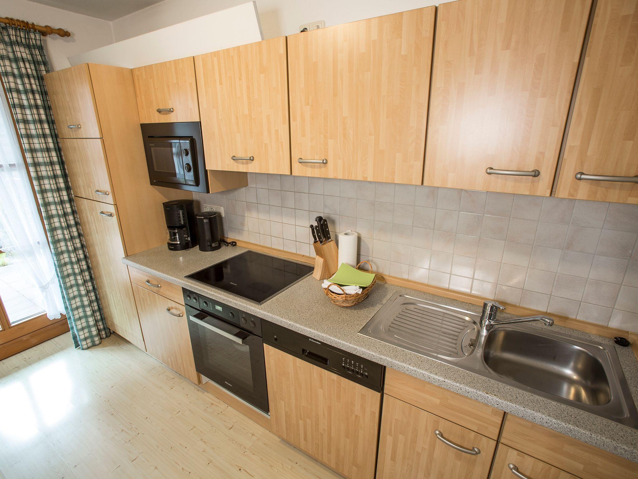 Mit viel Liebe zum Detail eingerichtete Ferienwohnung (75 qm), Balkon, Wohnzimmer mit Kachelofen (Holz steht zur Verfügung), Eßecke, Couch. Separate Küche komplett ausgestattet mit Spülmaschine, Mikrowelle, Kaffeemaschine, Wasserkocher, 4-Plattenherd mit Backrohr, Kühlschrank mit Gefrierfach, Bad mit Badewanne und Dusche, WC separat. Kabel-TV, Telefon, Radio, Stereoanlage und Internet - WLAN kostenfrei nutzbar.