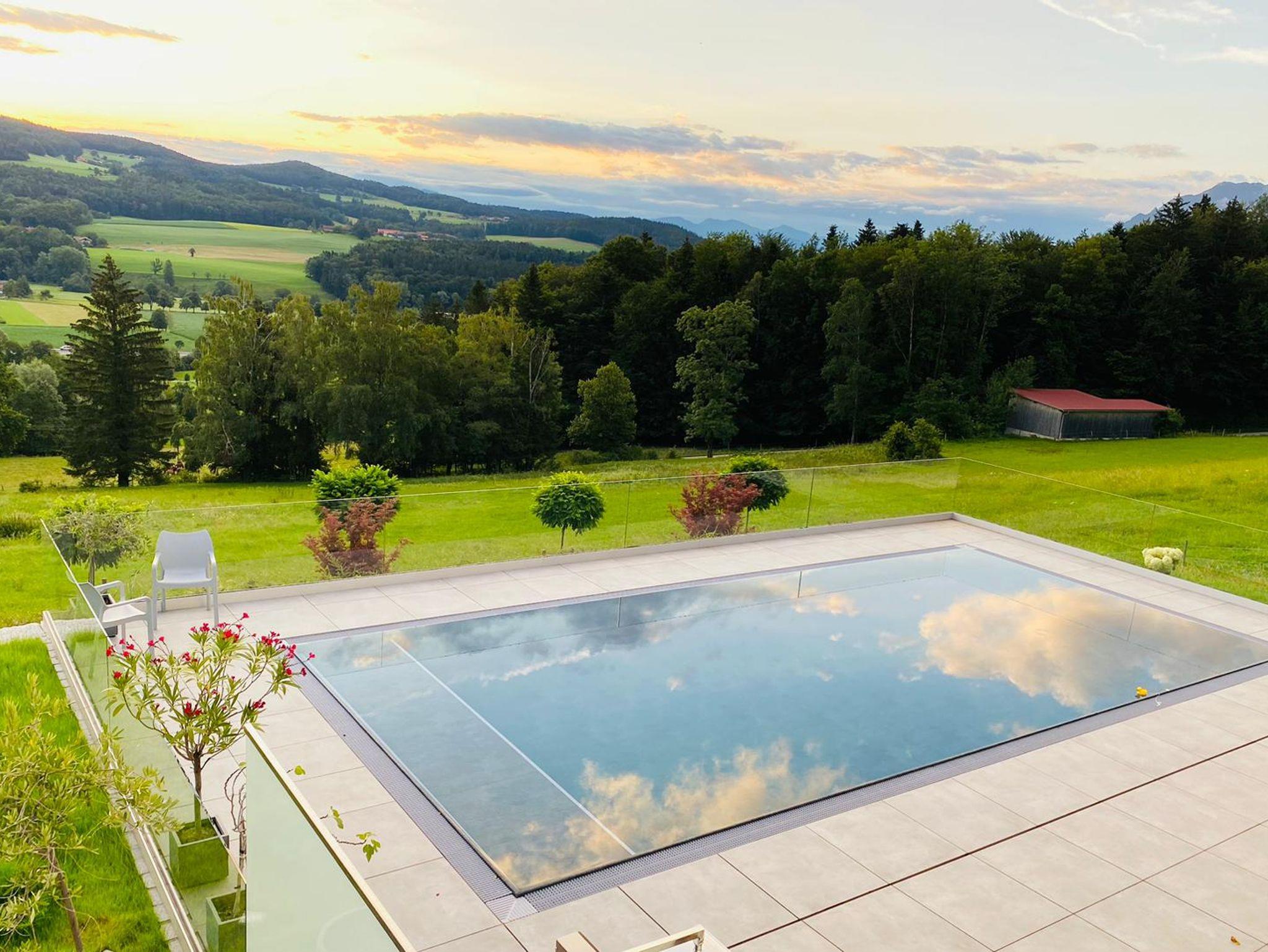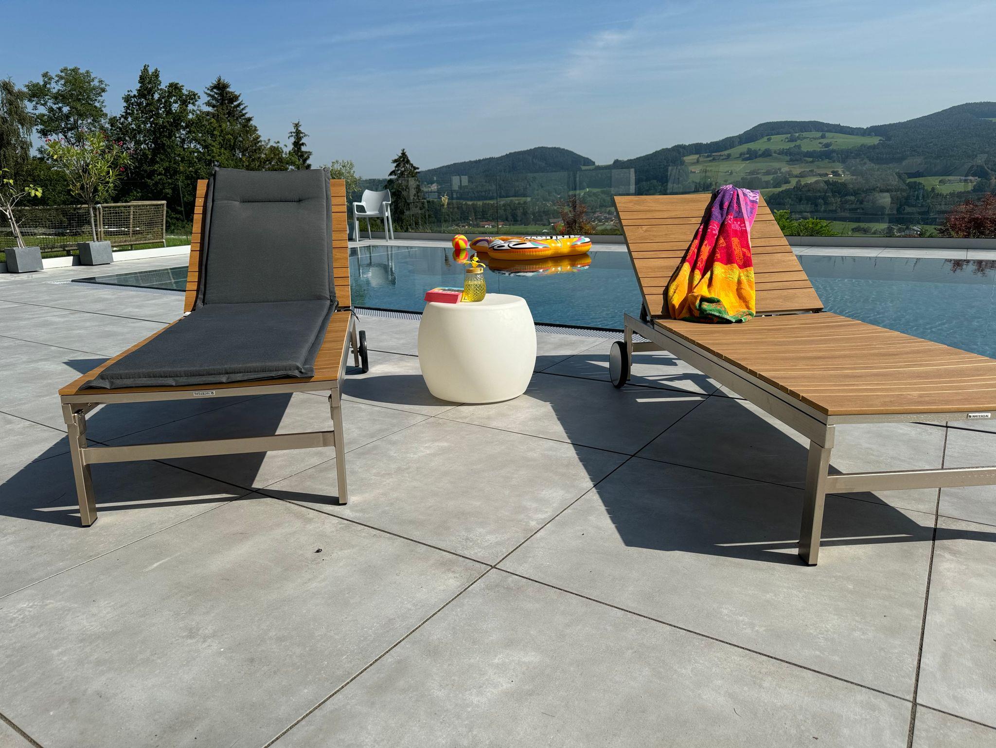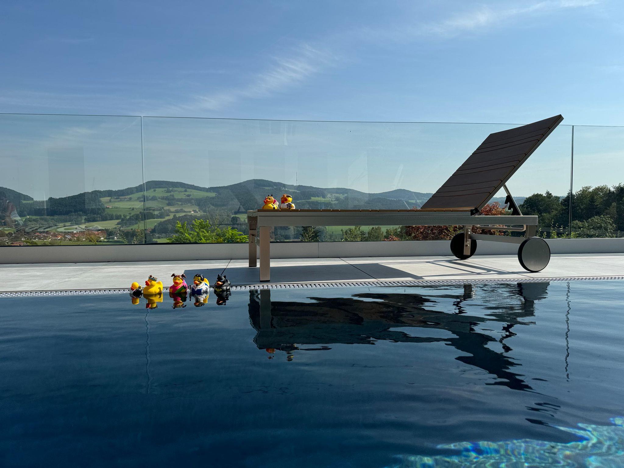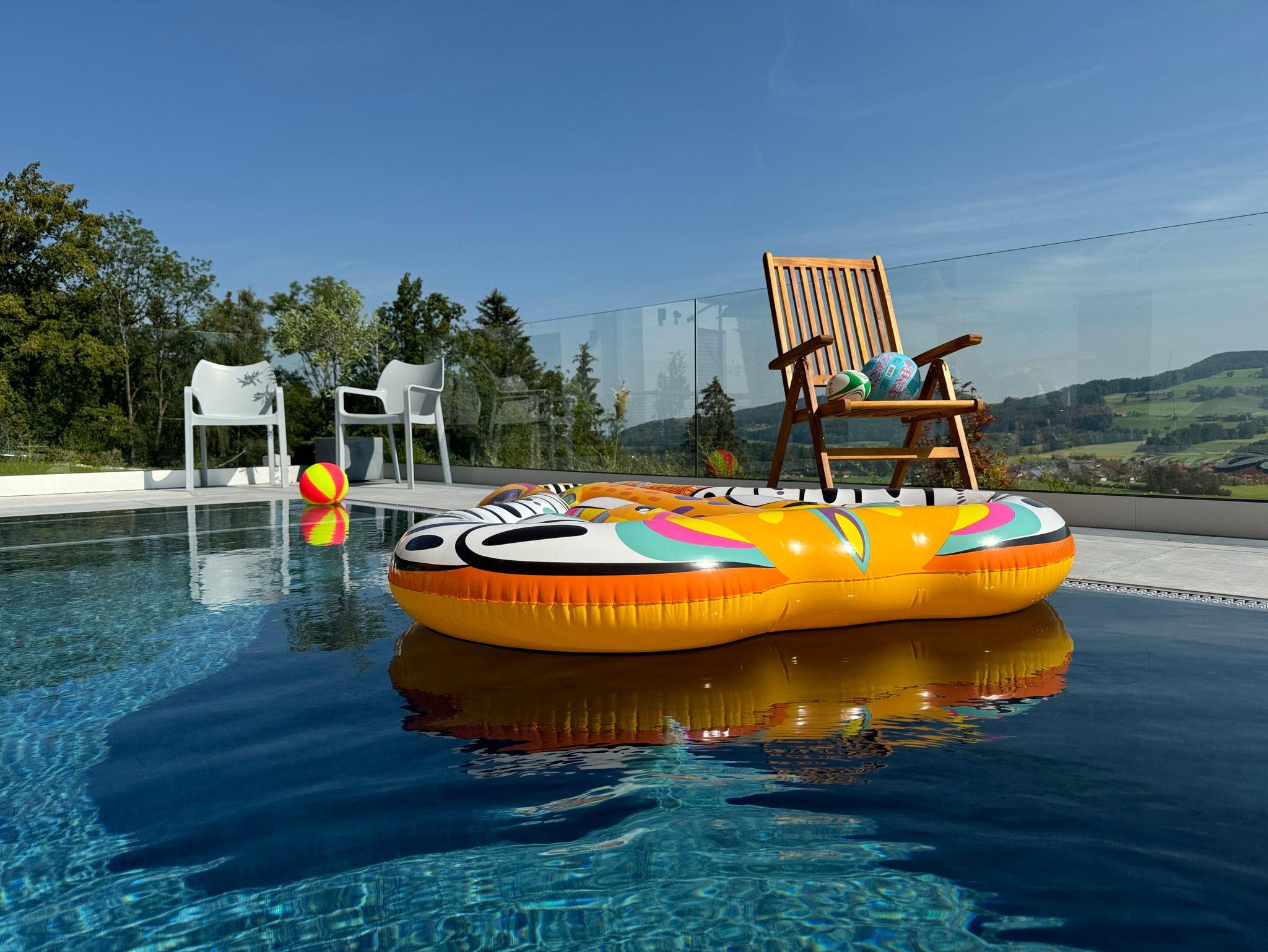 Das Highlight im Außenbereich: Ein großzügiger, beheizter Salzwasser-Pool, der sanft zur Haut ist und zum Abtauchen einlädt. Während Sie entspannen, schweift Ihr Blick über das umliegende Bergpanorama, das zu jeder Jahreszeit verzaubert. Genießen Sie modernen Komfort, absolute Privatsphäre und das Gefühl, angekommen zu sein. Die Top-Lage ist ideal für Ausflüge nach Salzburg, zum Königsee, Salzbergwerk Berchtesgaden, Hans-Peter Porsche Traumwerk, dem Chiemsee und vielem mehr.