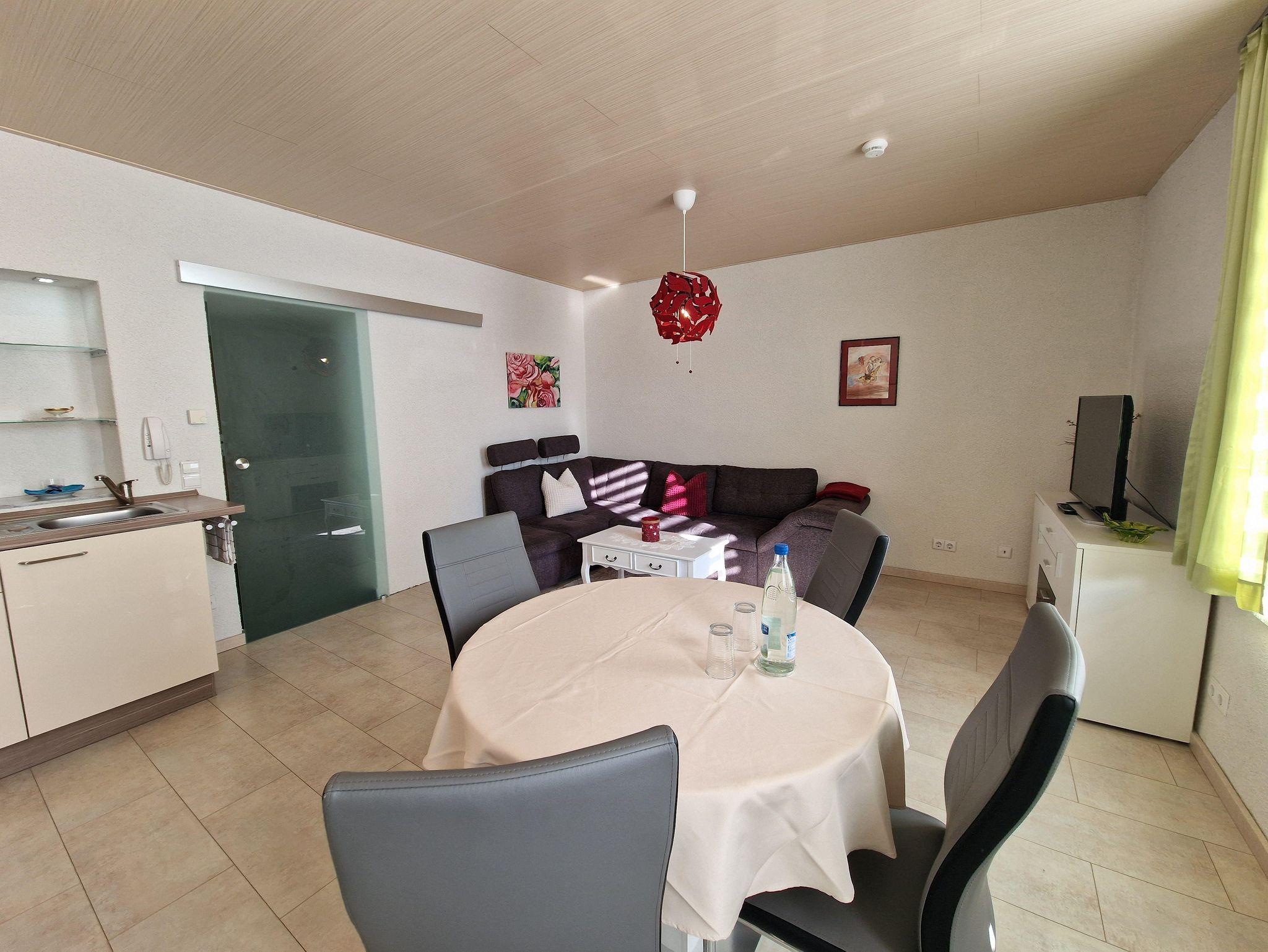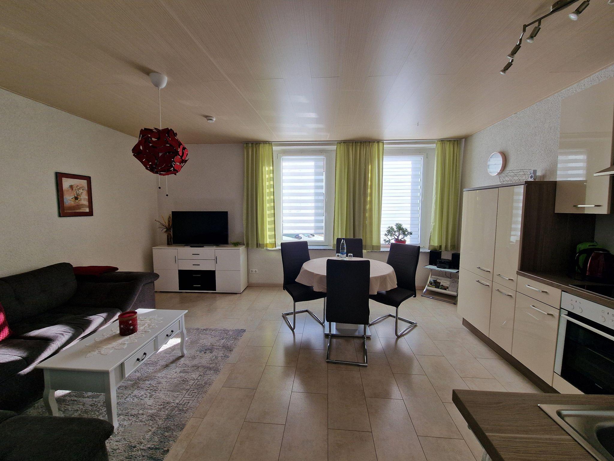 Bei uns wohnen Sie in einer schönen hellen Ferienwohnung (42 m2) mit einem Schlafzimmer (Bett 140 * 200), einem modernen Bad sowie einem geräumigen Wohn- Essbereich. Eine Aufbettung bis max. 4 Personen ist mit der gemütlichen Schlafcouch möglich. Unsere Wohnung ist eine Nichtraucherwohnung (Raucher können auf dem Hof rauchen).