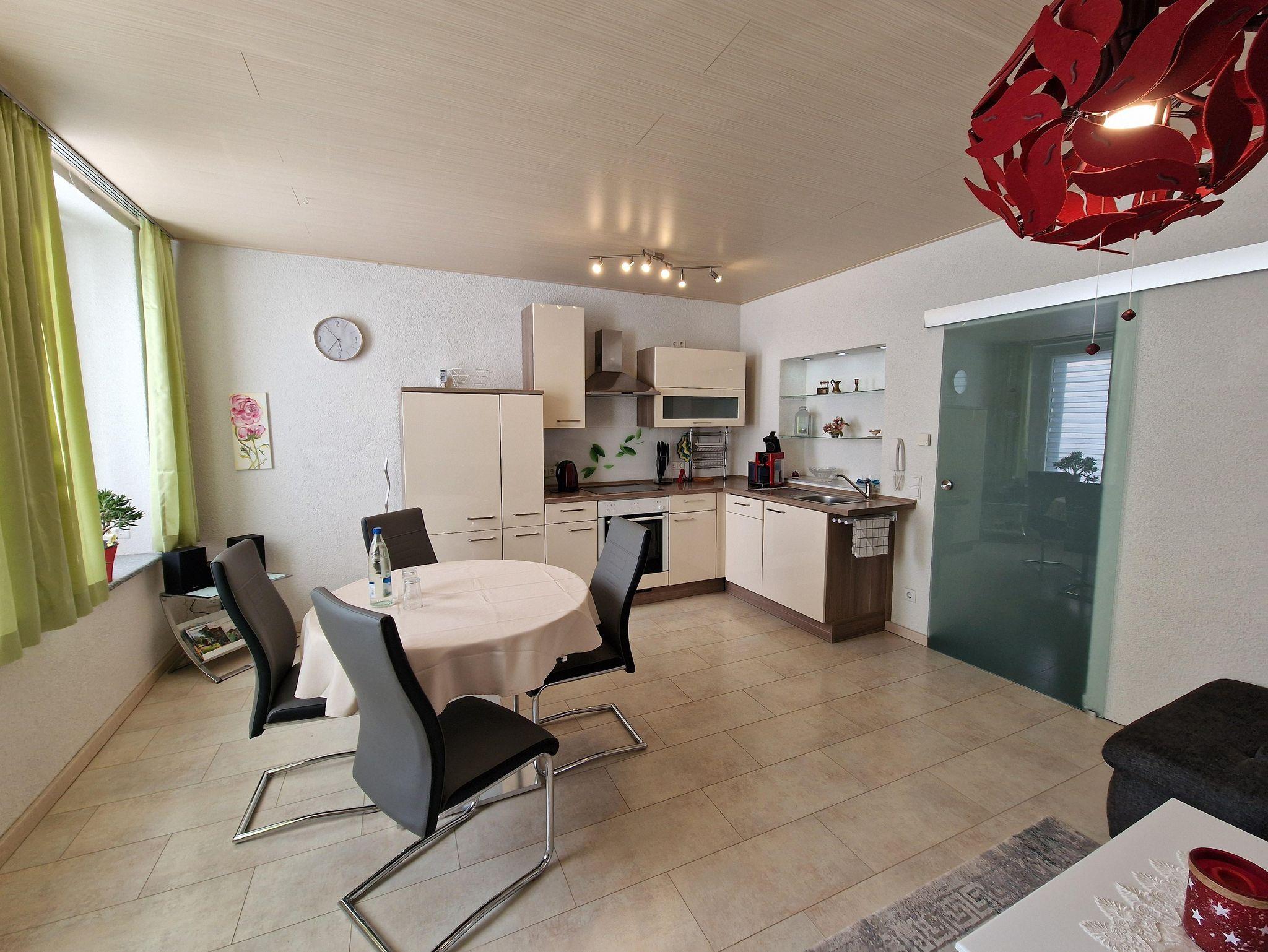 In der Ferienwohnung finden Sie eine gute Ausstattung, z.B. Ceranherd(4 Platten), Backofen, Wasserkocher, Kaffeemaschine, Waschmaschine, 60 Zoll Flachbildfernseher etc.