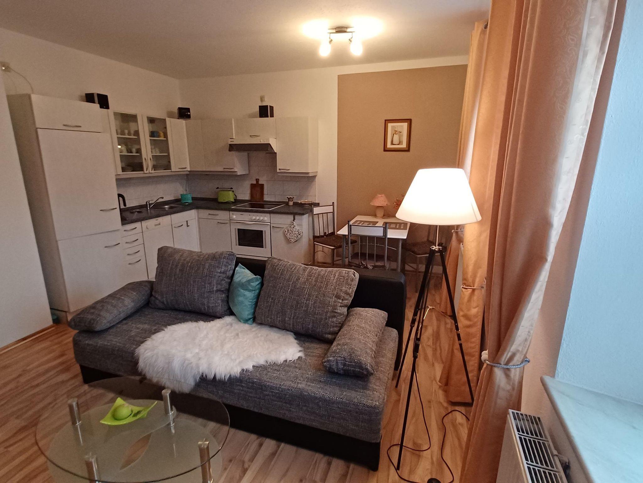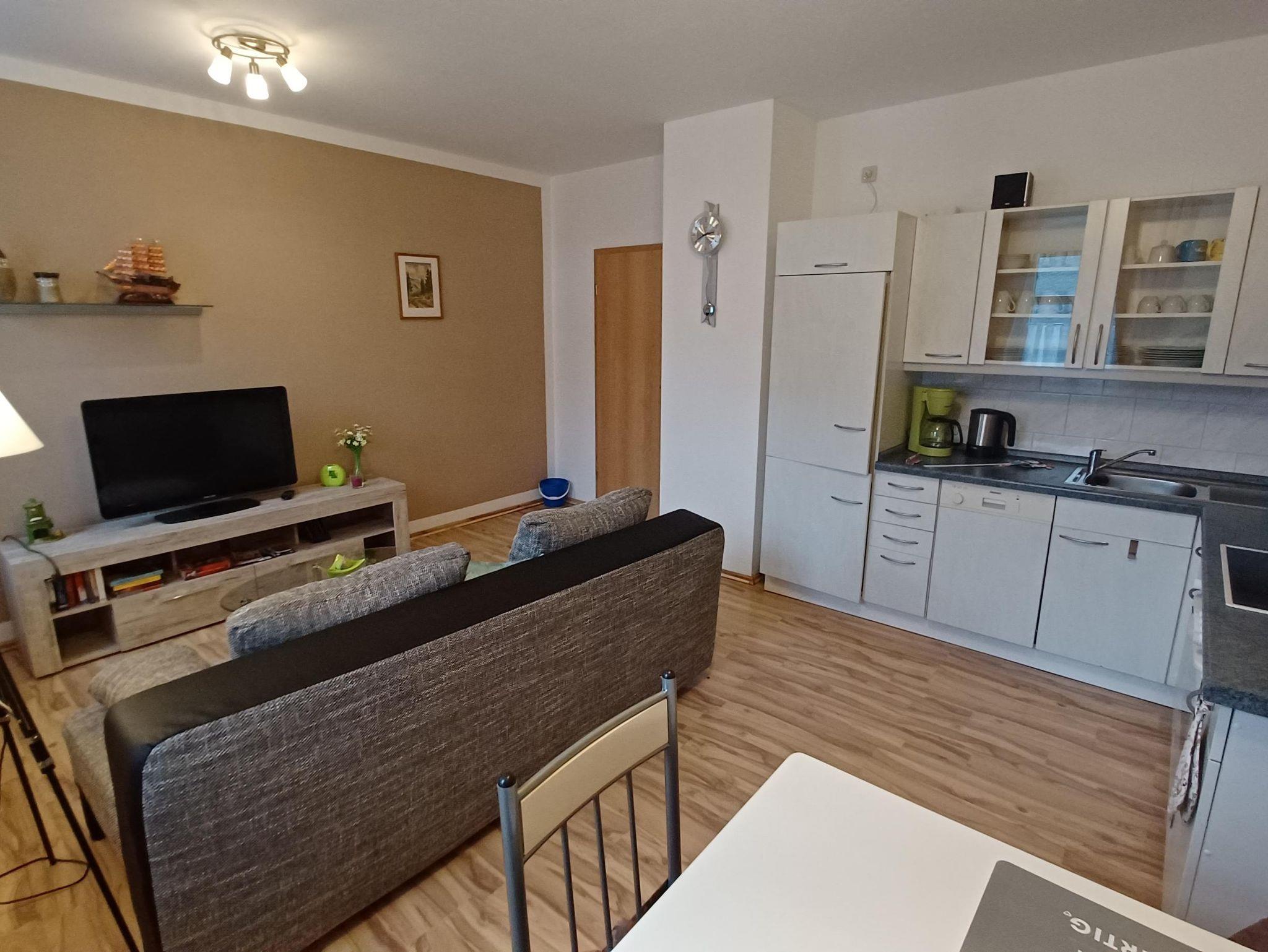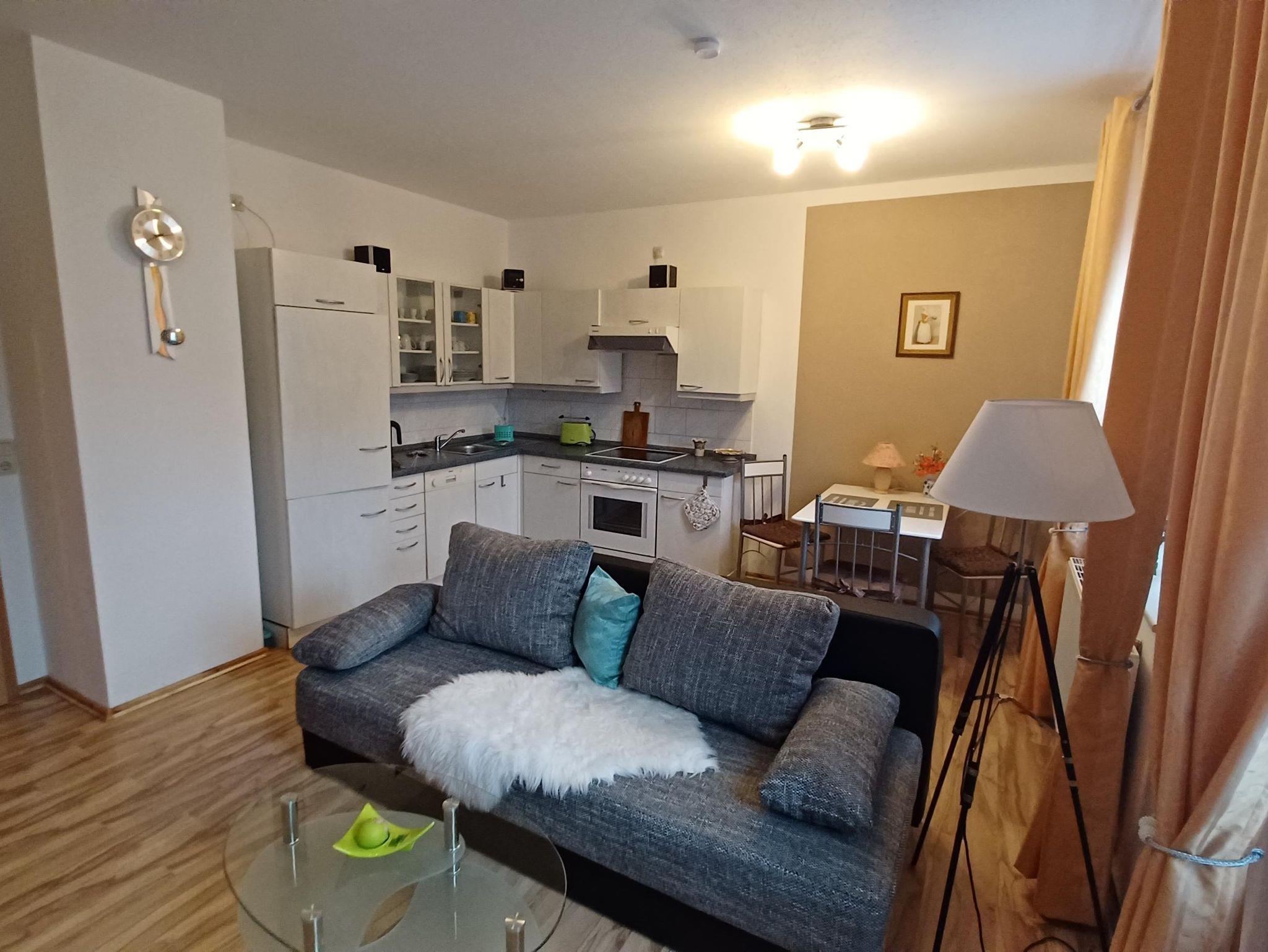Ausgestattet mit einer Einbauküche mit Kaffeemaschine Toaster und Wasserkocher einem Backofen und Geschirrspüler ,einer gemütlichen Couch ,TV ,einer Musikanlage und W LAN.
