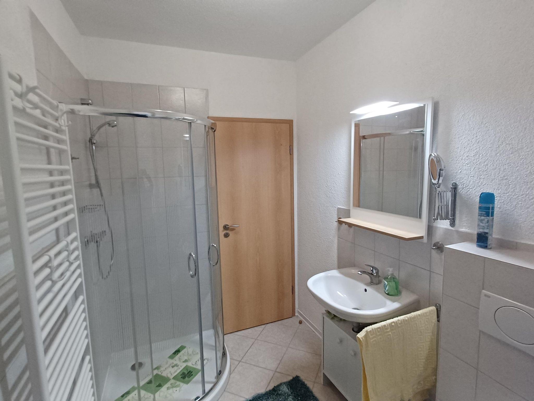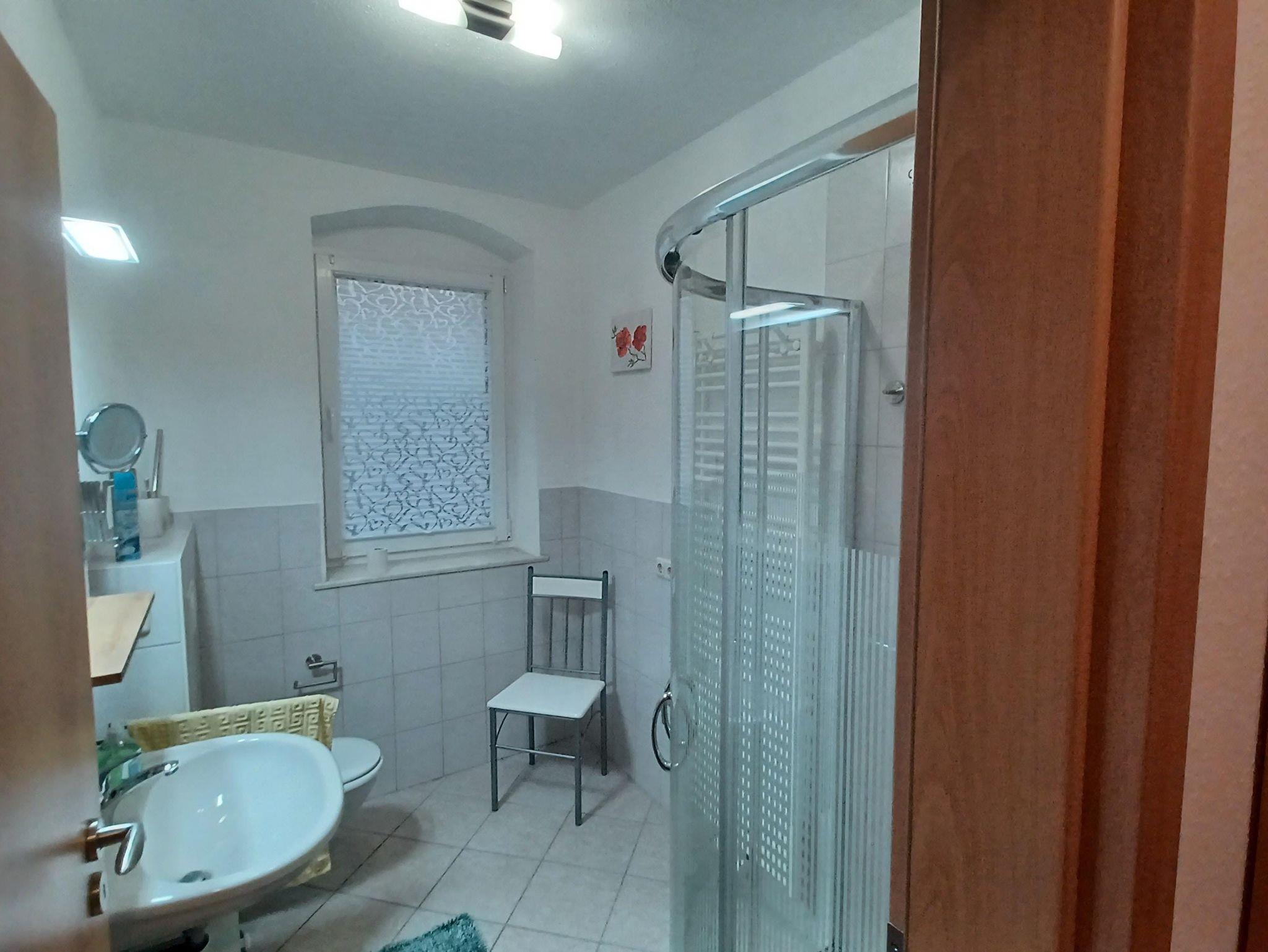 Ein helles Bad mit Dusche , WC, Waschbecken und Fenster gehören natürlich dazu.