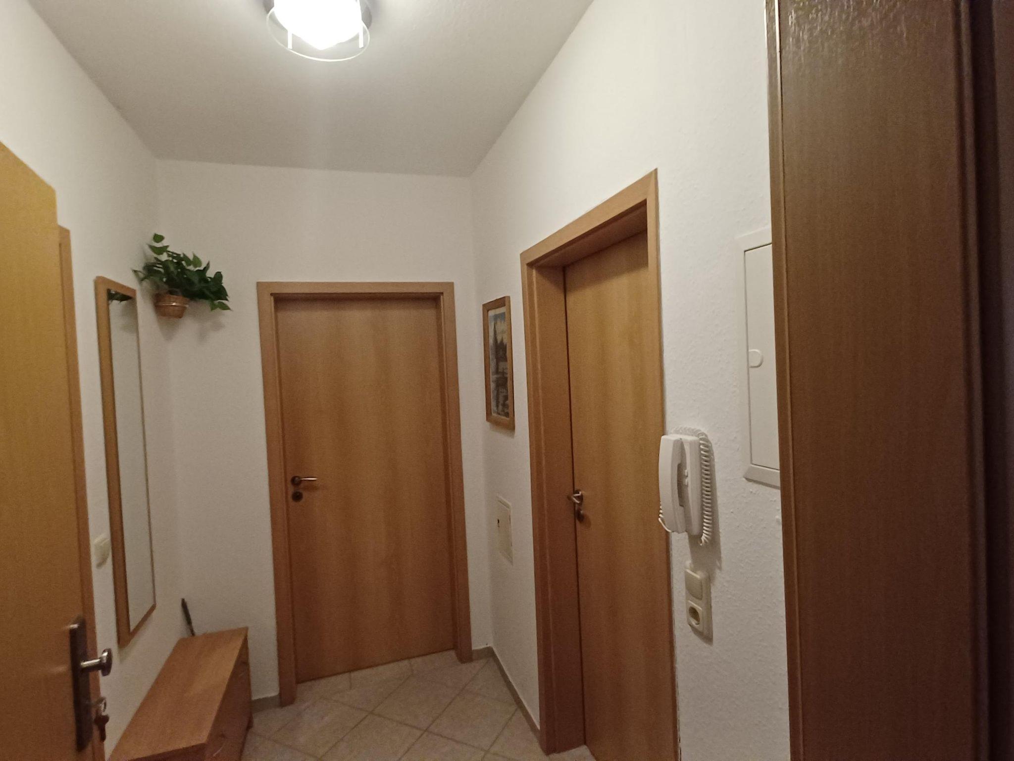 Die Ferienwohnung liegt separat im Erdgeschoss mit eigenem Flur .