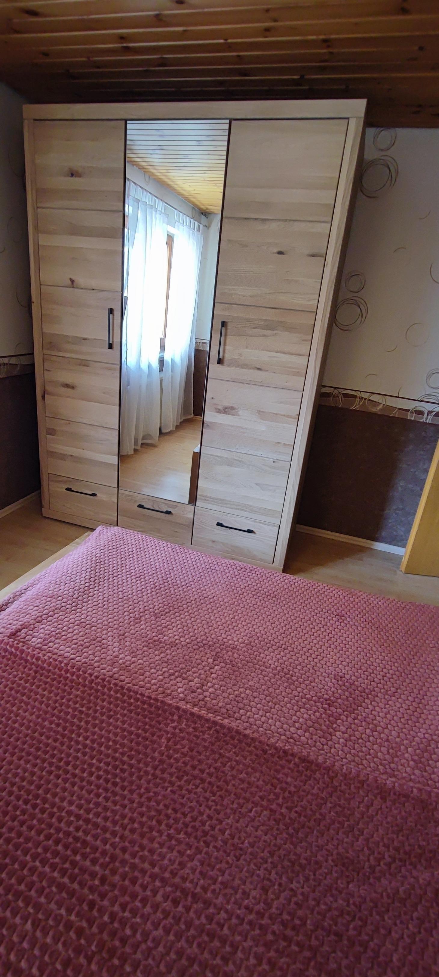 Unsere Ferienwohnung hat ca 60qm Wohnfläche. Die Zweiraumwohnung besteht aus einem Wohnzimmer mit Arbeitsplatz und einem Schlafzimmer, einer komplett eingerichteten Küche und einem kleinen grünen Bad mit Dusche und Waschmaschine.