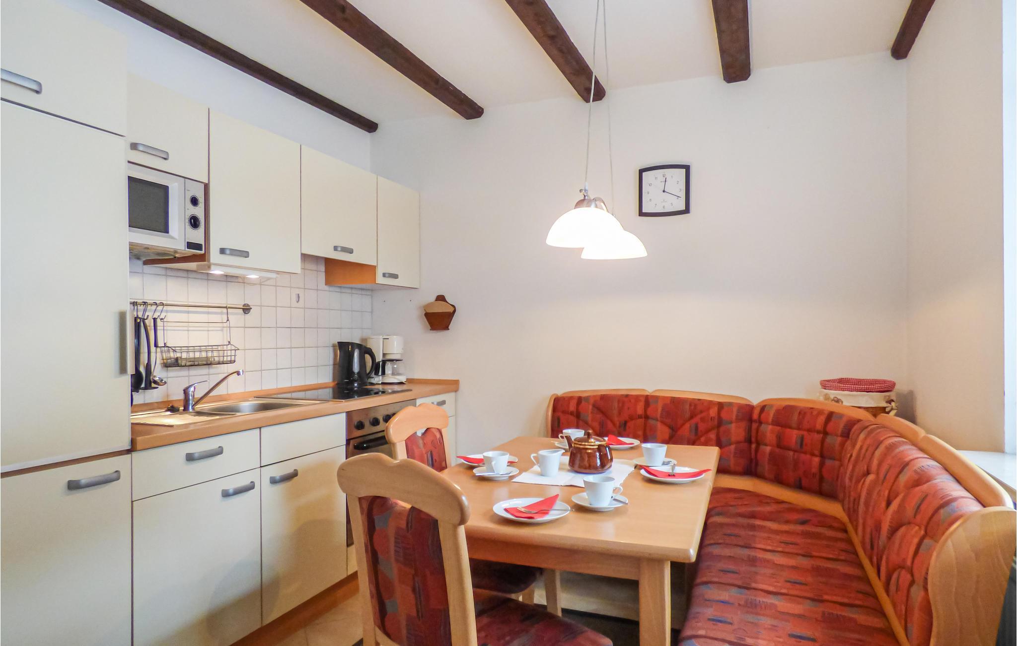 Die mit hochwertigen Möbeln eingerichtete Ferienwohnung befindet sich im Erdgeschoss des Ferienhauses. Das Panoramafenster eröffnet Ihnen einen tollen Blick auf die faszinierende Landschaft. An das gemütliche Wohnzimmer schließt die offene Küche mit Sitzecke an. Im Badezimmer mit Dusche steht Ihnen eine Waschmaschine zur Verfügung.