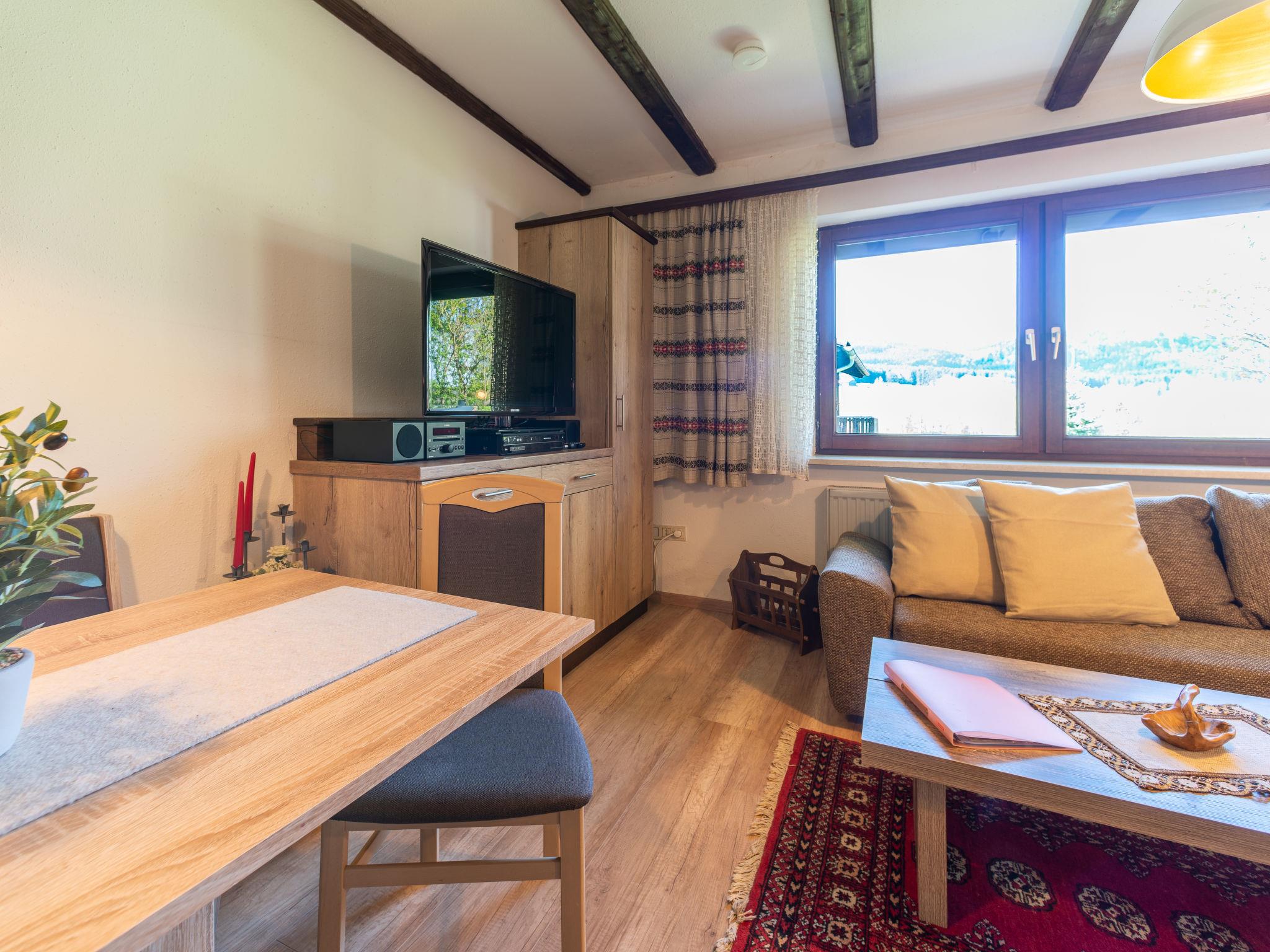 2-Zimmer-Wohnung 38 m2, im Erdgeschoss. Gemütlich eingerichtet: Wohn-/Esszimmer 18 m2 mit 1 Diwanbett (80 cm, Länge 200 cm), Sat-TV (Flachbildschirm), Video, CD, Stereoanlage und DVD. 1 Zimmer 12 m2 mit 1 Doppelbett (180 cm, Länge 190 cm). Kochnische (2 Kochplatten, Mini-Backofen, Geschirrspüler, Mikrowelle, elektrische Kaffeemaschine). Dusche/WC. G-Heizung. Kleine Terrasse 15 m2 teilweise überdacht. Terrassenmöbel. Schöne Sicht auf die Berge. Zur Verfügung: Haartrockner. Internet (Wireless LAN, gratis). IPod docking station. Bitte beachten: Nichtraucher-Unterkunft. Maximal 1 Haustier/Hund erlaubt. Rauchmelder. See 150 m. Bei Reservierung des Zusatzbettes steht Ihnen das Diwanbett im Wohn-/Esszimmer zur Verfügung.