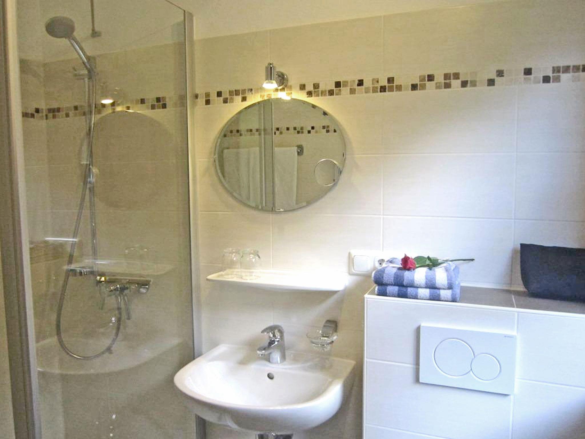 Unser gemütlich eingerichtetes Doppelzimmer ist mit einem Doppelbett und einer ausziehbaren Schlafcouch, digital Flachbild-SAT-TV und Balkon mit Balkonmöbeln ausgestattet. Genießen Sie die herrliche Natur zum Entspannen. Badezimmer mit Dusche/WC, Handtücher und Fön. Im Aufenthaltsraum haben wir für unsere Gäste, zur allgemeinen Nutzung, einen Gäste-Kühlschrank, einen Kaffeeautomaten, sowie Geschirr und Spiele, die jederzeit gerne zur Verfügung stehen. Leider können wir keine Haustiere und Hunde aufnehmen.