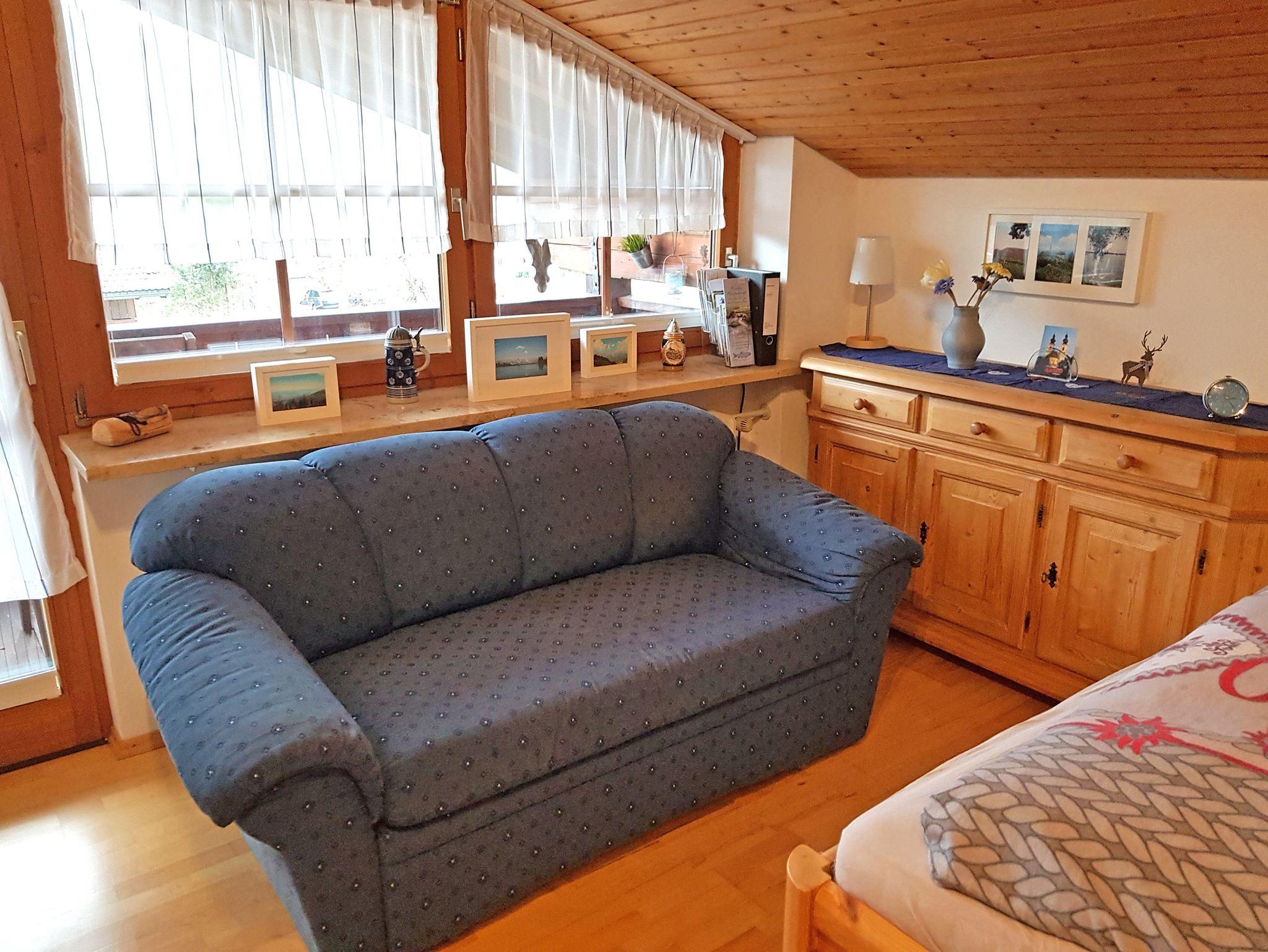 Ferienwohnung Bergblickl 28 qm Wohn-/Schlafraum mit Balkon, Dachschräge/Mansarde